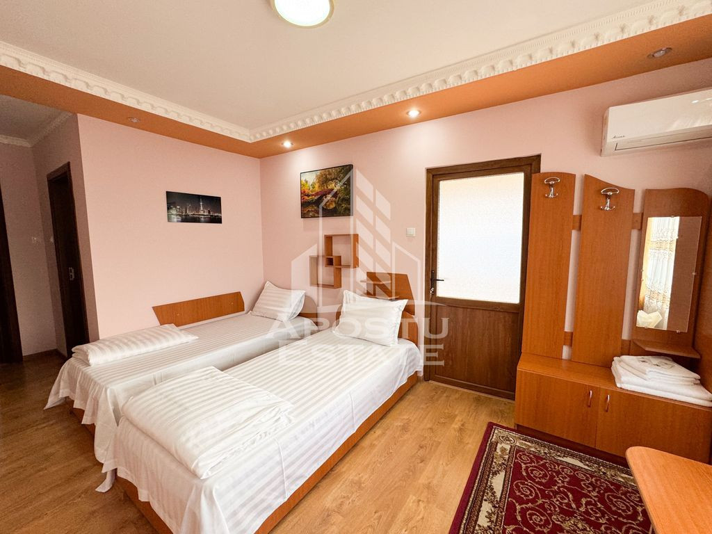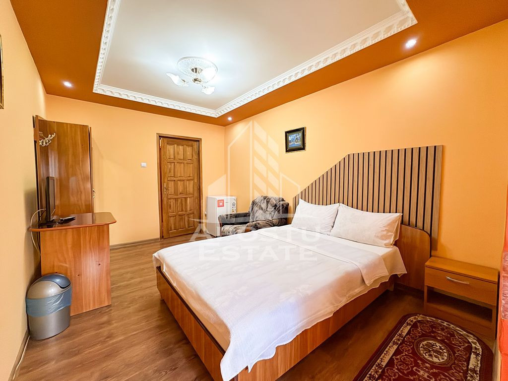 APOSTU ESTATE va propune spre vanzare o oportunitate unică de investiţie în Hunedoara, un oraş cu o istorie bogată, beneficiind de Castelul Corvinilor, desemnat Destinaţia Anului 2025. „La Vilă” Pensiunea - Restaurant Maria, o afacere de familie cu tradiţie din 1993, este disponibilă pentru vânzare la cheie, împreună cu firma. Firma care deţine „La Vila” Pensiunea - Restaurant Maria a fost înfiinţată în 1993, reprezentând un pilon al ospitalităţii în Hunedoara de peste trei decenii. Această longevitate este o dovadă a administrării sale constante şi eficiente, adaptându-se cu succes la schimbările din piaţă şi menţinând standarde înalte de calitate. O locaţie perfectă pentru evenimente şi relaxare. Construită în 1996, pensiunea oferă o capacitate de cazare de 14 persoane în 7 camere duble, din care 5 cu băi proprii, fiecare amenajată cu bun gust şi dotată cu toate facilităţile necesare pentru un sejur confortabil. Fiecare cameră este dotata acu aer condiţionat. Există posibilitatea extinderii afacerii, prin amenajarea a încă minim 4 dormitoare, în mansarda imobilului. Cele două restaurante spaţioase, cu o capacitate de 90 de locuri, respectiv 70, sunt ideale pentru organizarea de evenimente memorabile, de la nunţi şi botezuri, până la petreceri private sau corporate şi aniversări. Bucătăria, complet funcţională şi echipată, este pregătită pentru orice provocare culinară, iar spaţiile de depozitare generoase de la subsol, inclusiv camera frigorifică, asigură eficienţa necesară unei activităţi de succes. O afacere la cheie, cu potenţial de dezvoltare: Imobilul se află într-o stare excelentă, necesitând doar mici modernizări, şi beneficiază de o locaţie consacrată în rândul hunedorenilor. Afacerea este vândută la cheie. Hunedoara, un oraş cu o istorie fascinantă: Hunedoara este un oraş cu o istorie fascinantă, dominat de impunătorul Castel al Corvinilor, un simbol al arhitecturii gotice transilvănene. În apropiere se află şi alte atracţii turistice, precum Parcul Naţional Retezat, Mănăstirea Prislop, Cetatea Devei, Regia Sarmisegetuza şi multe alte locuri care atrag anual mii de vizitatori. O oportunitate unică de investiţie: „La Vila” Pensiunea - Restaurant Maria, este o oportunitate unică de investiţie pentru cei care doresc să deţină o afacere de succes în domeniul ospitalităţii, într-un oraş cu un potenţial turistic în creştere. Caracteristici esenţiale: * Firma înfiinţată în 1993, constant administrată şi crescută corect şi cu succes * Clădire edificată în 1996 * 7 camere duble, capacitate de cazare 14 persoane * 2 restaurante, cu o capacitate de 90 de locuri fiecare, respectiv 70 * Locaţie consacrată în Hunedoara * Aproape de Castelul Corvinilor şi alte atracţii turistice Vă invităm să ne contactaţi pentru mai multe informaţii şi pentru a programa o vizionare. ID intern: CP2816475