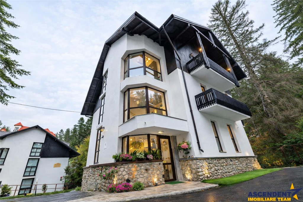 Comision cumparator: 0% din valoarea de tranzactionare. ASCENDENT IMOBILIARE propune spre vanzare o REPREZENTARE IMOBILIARA, particularizata prin amplasarea unei resedinte in cea mai mare si moderna statiune de vacanta din tara, fiind o atractie de renume international, Poiana Brasov. Pentru confortul dumneavoastra va invitam sa faceti o prima vizionare, chiar acum, prin accesarea filmelor de prezentare, pe care vi le-am pregatit, cu drag: Film Prezentare 1: https://www.youtube.com/watch?v=pn0DX_UAjjY Film 2: https://www.youtube.com/watch?v=Zh9So2l0Qdw Din cele mai vechi timpuri, Poiana a atras atat pasionati de drumetii montane cat si impatimiti ai sporturilor de iarna. Situata la o altitudine de 1020 m, statiunea de schi cu acelasi nume, va ofera trasee pe Muntele Postavaru, un patinoar, un centru de recreere acoperit si un complex sportiv cu partii pentru tubing si sanius. Vara, excursionistii si biciclistii exploreazs cararile verzi de munte, iar hergheliile ofera tururi calare. Hotelurile de lux, pensiunile, magazinele cu produse de schi si restaurantele traditionale romanesti anima zona. Va invit la aceasta resedinta situata intr o zona linistita a Statiunii, imprejmuita de brazi inalti, cocheta si primitoare, oferind locul ideal pentru primirea oaspetilor atat vara, cat si iarna. Excelenta pozitionare pe segmentul de business, cladirea este structurata pe S P E M, avand urmatoarea configuratie: - in zona de parter(considerata demisol) avem un dormitor mare baie, camera tehnica cu 2 centrale termice care deservesc cladirea, bucatarie personal - la etajul 1 si 2 sunt 10 camere structurate ca si apartamente sau suita de apartament si living pentru familii cu copii, fiecare deservite de bai cu cabina de dus - la mansarda avem 2 camere ale personalului si o baie Terasa de vara este foarte frumoasa, intotdeauna oaspetii sunt primiti cu o bautura calda in sezonul rece si intampinati cu caldura de catre proprietari. Foarte cocheta este sala de mic dejun, in suprafata utila de 38 mp, cu o capacitate de 25 persoane, designul acestei incaperi fiind in armonie cu linia proprietatii, cu tonuri calde de culori si finisaje de calitate. Aceeasi linie eleganta o regasim in pensiune, linia mobilierului fiind una moderna, comandate special, astfel incat fiecare camera are o nota aparte. Proprietatea beneficiaza de sistem de supraveghere video, sistem de alarma, aer conditionat, cladirea fiind reabilitata termic, cu structura solida din caramida. Oferta vine in intampinarea dumneavoastra cu accesul a 10 locuri de parcare. Recomandam si pe segmentul investitie, spatiu, se ofera flexibilitate pentru schimb cu teren(plus diferenta) doar in Poiana Brasov! Va invit sa descoperim impreuna povestea acestei incantatoare pensiuni, recomandata atat pe segmentul investitional cat si rezidential. Invitam colegii la colaborare! O zi cu soare in suflet sa aveti!:) Consilieri specializati pe oferta: domnul Nicu Pavel Telefon/WhatsApp: 0720 500 650 si doamna Gilda Georgescu Telefon/WhatsApp: 0722 807 623 Detalii, fotografii suplimentare si alte variante similare exclusive: www.ascendentimobiliare.ro