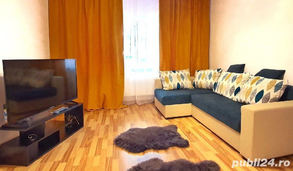 Apartament modern compus din living, o bucatarie, o baie si hol la etajul 2. Este situat la 1 minut de mers pe jos de cel mai apropiat market. Livingul dispune de un coltar extensibil pentru 2 persoane. Acces la internet Wifi, TV HD, bucatarie complet utilata. In apropiere exista diverse cafenele, supermarketuri si farmacii la o distanta de maxim 50 de metri. FACILITATI: frigider, aragaz cu cuptor electric, cuptor cu microunde, expressor, prajitor de paine. Suprafata utila este de 40 mp.