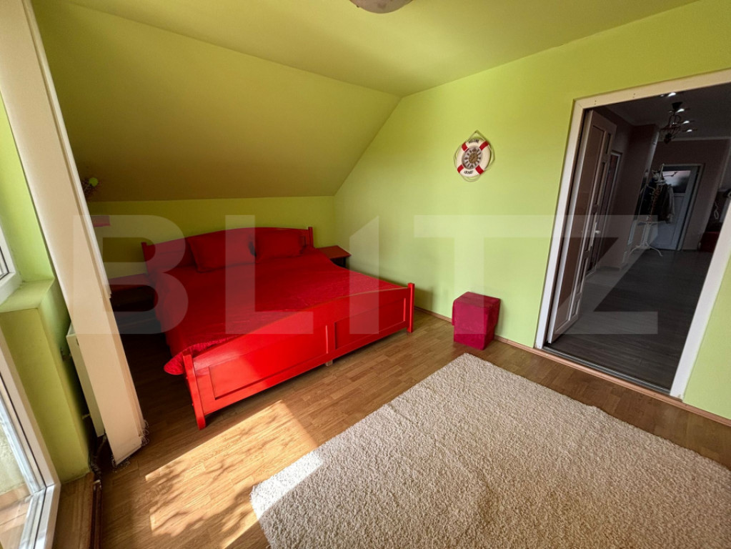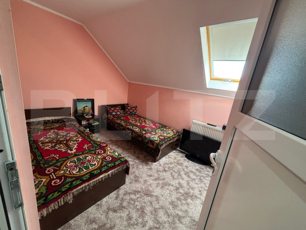 Casă spațioasă cu două unități locative, garaje și anexe – Jucu de Sus Blitz vă propune spre vânzare o proprietate solidă și bine întreținută, situată într-o zonă liniștită din Jucu de Sus, ideală pentru o familie numeroasă sau pentru două familii ce își doresc independență, dar și apropiere. Casa, cu o suprafață utilă de 200 mp, este construită din cărămidă (mansarda din BCA), acoperită cu țiglă, fiind izolată complet cu polistiren pe interior, inclusiv sub dușumea, pentru confort termic ridicat în orice sezon. Proprietatea este dispusă pe două niveluri, fiecare cu centrală proprie pe gaz. Parterul este compartimentat practic, cu 2 dormitoare, living si bucatarie, baie, cămară, debara. Mansarda, cu intrare separată, este compartimentată în bucătărie cu living open-space, 3 dormitoare și 1 baie. Ferestrele sunt din termopan cu profil PVC, iar curtea, pavată, oferă un spațiu curat și bine organizat, incluzând două garaje și o anexă utilă pentru depozitare sau activități gospodărești. Proprietatea este ideală pentru cei care caută o locuință spațioasă, funcțională și versatilă, într-o comună bine conectată la Cluj-Napoca. Cod ofertă / ID BLITZ: P156009 Id intern: P156009