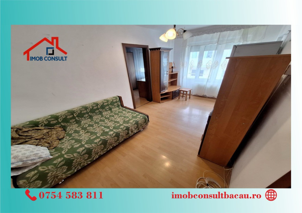 Echipa Imob Consult Bacau vă prezinta spre achizitionare un apartament primitor cu 2 camere semidecomandat, situat la etajul 3 din 4, pe strada Lalelelor, într-o zonă liniștită, accesibilă și bine cotată din municipiul Bacău. Locuința ofera un ambient confortabil și bine proporționat, perfect atât pentru o persoană sau un cuplu aflat la început de drum, cât și pentru investiție. Detalii și avantaje • Bloc izolat termic, construit în 1971, bine întreținut • Centrală termică proprie, pentru confort și independență • Apă curentă separată • Tâmplărie PVC cu geam termopan, pentru o bună izolare termică și fonică • Etaj intermediar (3/4) – poziționare ideală, apreciată pentru eficiență energetică și accesibilitate Apartamentul este luminos și aerisit, cu o compartimentare practică ce valorifică fiecare metru pătrat. Zona este cautata, oferind liniște, siguranță și acces facil către magazine, școli, farmacii și mijloace de transport. Această proprietate reprezintă o oportunitate excelentă pentru cei care caută un apartament cu potențial, într-o zonă echilibrată din punct de vedere al confortului și al accesibilității urbane. Ocazie de neratat – astfel de oferte se vând repede! Sună acum pentru detalii și vizionare! - Cosmin: 0754 583 811; - Corina: 0740 288 297, sau la sediul agenției noastre, Imob Consult Bacau, situat pe strada Banca Națională nr. 27 la intersecția cu Str. Neagoe Vodă, langa Irish Pub.