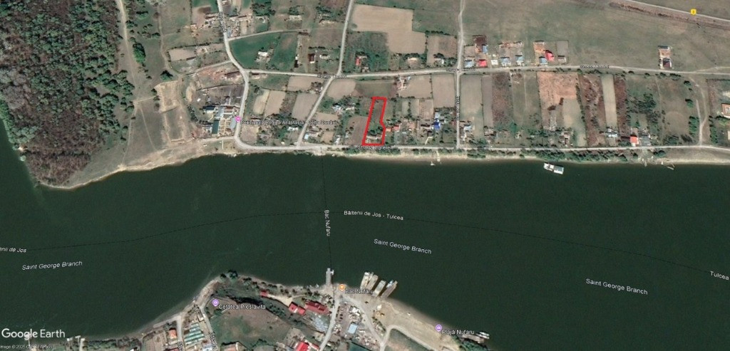 • PERSOANA FIZICA • Teren 1.477mp, situat in intravilanul localitatii Ilganii de Jos, com Nufaru, jud Tulcea. • Deschidere 24 m, situat pe malul Dunarii, vedere directa la luciul apei. • Liber de constructii, cu toate utilitatile pe teren, la 100m de Bac. • Imprejmuit. • Ideal investitie, posibilitati multiple dezvoltare structura turistica. • Cadastru si intabulare. • Negociabil