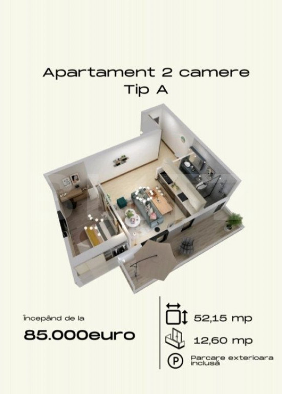 Apartament de 2 camere, cochet, in zona Torontalului, in partea din oras, nu in cea din camp, e o zona in plina dezvoltare si cu multe facilitati, in apropiere avand supermarket-uri, benzinarii, Iulius Town si alte beneficii. Acest model de apartament se gaseste incepand de la etajul 1, pana la etajul 6 si este compartimentat practic si inteligent, cu o suprafata de 52.15mp util si o terasa de 12.6mp. Imobilul in momentul de fata este la stadiu de rosu/gri, iar termenul de finalizare la cheie se va face in Decembrie, cu predarea pana in data de 0103.2024. Pretul apartamentului este la cheie, plus un loc de parcare exterior inclus in pret. Va asteptam la vizionare. Cod ofertă / ID BLITZ: P6094 Id intern: P6094