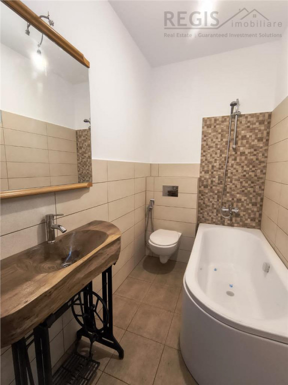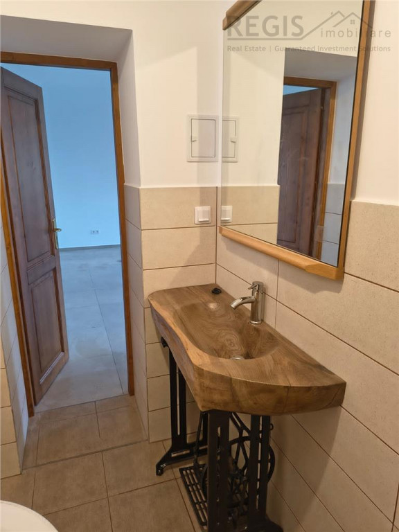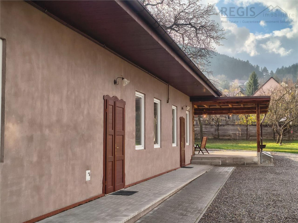ID INTERN: 5272 Regis Imobiliare va propune spre inchiriere o casa deosebita refacuta de la zero, la prima inchiriere. Totul este nou, nefolosit. Stil rustic imbinat cu stil modern. Casa e in proximitate cu Primaria Sacele pe drumul principal. Pentru finisaje s-a lucrat manual timp de 2 ani pentru a obtine detalii unice de bun gust. Statia de autobuz catre Brasov este la 200m. Structura este decomandata: Camera 1 suprafata 25 mp ; Camera 2 suprafata 30 mp ; Camera 3 suprafata 18 mp ; Bucatarie utilata cu suprafata de 15 mp; Terasa 47 mp; Beci 15 mp. Suprafata totala de curte gradina este 1150 mp. Suprafata totala proprietate, casa si teren 1300 mp. Casa are cu 2 grupuri sanitare fiecare echipata complet si aerisita natural. Terasa e punctul de atractie, pentru servit cafeaua, masa cu familia, pentru privelistea incantatoare catre munte. Posibilitate de parcare in curte. Proximitati : Market Brio, Restaurant Fenyes, Lidl, Penny, Kaufland, Profi, Banci, Scoli, Brutarie, Aprozar, Cafenea, Farmacie, Politie, Spital. Centrala termica pe gaz, va ofera incalzire in pardoseala, pentru un consum economic la facturile de utilitati. Curent electric 220V si 380V, cu posibilitate de incarcare auto. Distante cu masina: 10 minute cu masina de Calea Bucuresti, Carrefour, Selgros, Metro, Kaufland. 2 minute pana la Farmacie, 5 minute Restaurant Pizza Bella. Aceasta locatie este ideala pentru familie care iubeste natura, sau firma pentru birouri. Se inchiriaza pe o perioada minim de 1 an, cu posibilitate de prelungire contract. Pentru inchiriere se platesc chiria lunii in curs si garantie. NU se permit animale de companie in locatie, ci doar in curte. Casa este partial. mobilata. Poate devini ocul unde te intorci cu placere. Merita sa o vezi! Comision inchiriere 50% TVA din prima chirie Te asteptam cu drag la vizionare! Consultant Imobiliar Gabriela