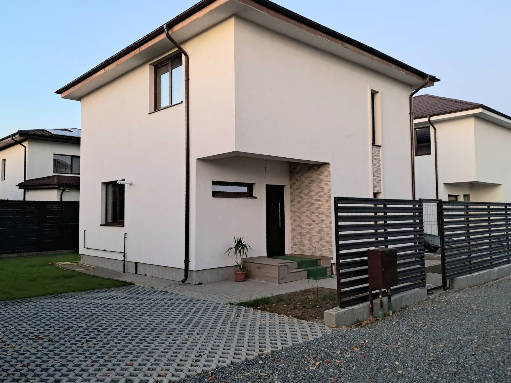 Proprietar vând vilă noua în Otopeni-Odai str. Adrian Iovan.Vila este P+1,are o suprafață construită de 137mp+25mp terasă+50mp pod, 255 mp de teren(+50 mp drum de servitute) din care 180 mp curte liberă, loc de parcare (betonată) pt 2 mașini.Parterul are living+bucătărie deschisă în suprafață de 45 mp și o baie cu duș. La etaj sunt 3 dormitoare de 12.5 mp fiecare și o baie de 5 mp cu cadă.Vila are toate utilitatile:canal,apă curentă,curent trifazat,internet, put pt grădină și suplimentar fosă.Incălzirea este mixtă la parter încălzire în pardoseală iar la etaj cu calorifere.Vila are și un pod generos de 50 mp care poate fi folosit ca spațiu de depozitare.S-au folosit la construcție materiale de cea mai bună calitate.Pretul de vanzare este 214.900 euro.