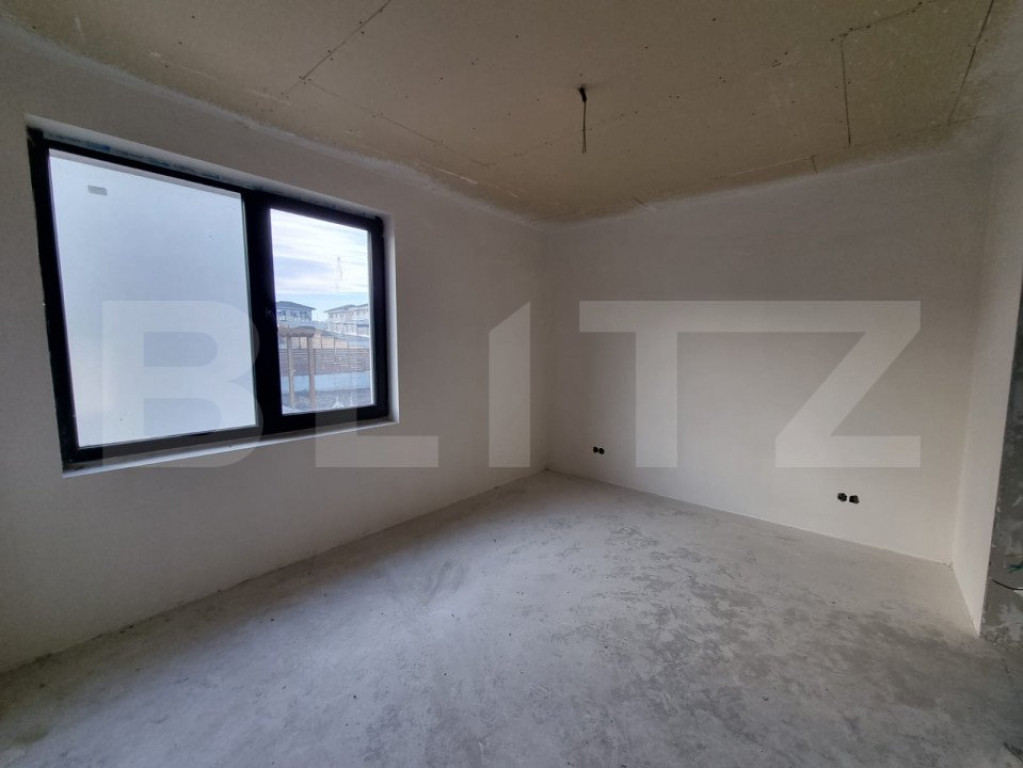Blitz va ofera spre vanzare o casa individuala cu CF, situata in Dezmir, cu o suprafata utila de 139 mp, si teren aferent de 436 mp. Casa se preda la stadiul semifinisat, cu incalzire in pardoseala la parter si la etaj, geamuri termopan triple, instalatiile trase pe pozitie. Compartimentarea acesteia este gandita astfel: Parter: un hol generos de intrare, baie, bucatarie, dining si living spatios cu iesire in gradina, garaj cu acces direct in casa. Etaj: dormitor matrimonial cu dressing si baie proprie, 2 dormitoare, baie si un balcon.