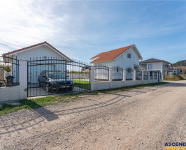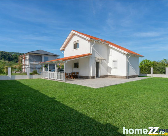 Structura este de caramida Porotherm, suprafata utila este de 100 mp, iar terenul aferent in suprafata de 486 mp, este imprejmuit cu zid de beton spre livada si decorat cu fier forjat spre strada. In gradina avem un frumos covor de gazon, o terasa cu mobilier rustic, masa si banci din lemn masiv, iar in jurul casei avem trotuar/alee si platforma din beton amprentat.