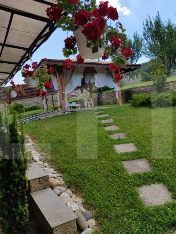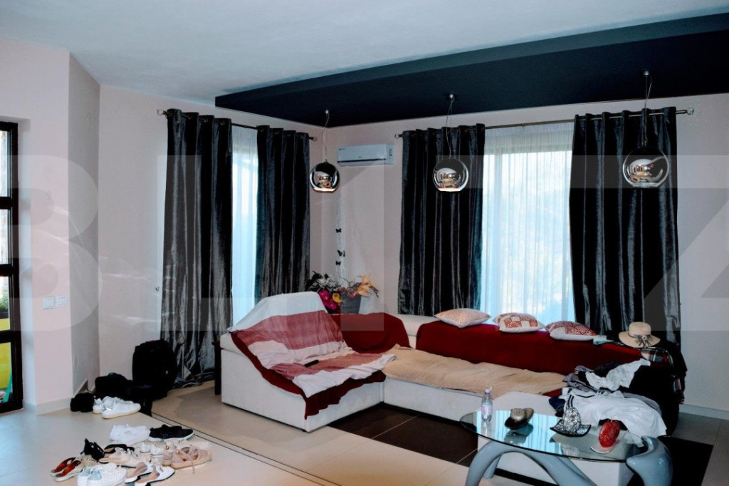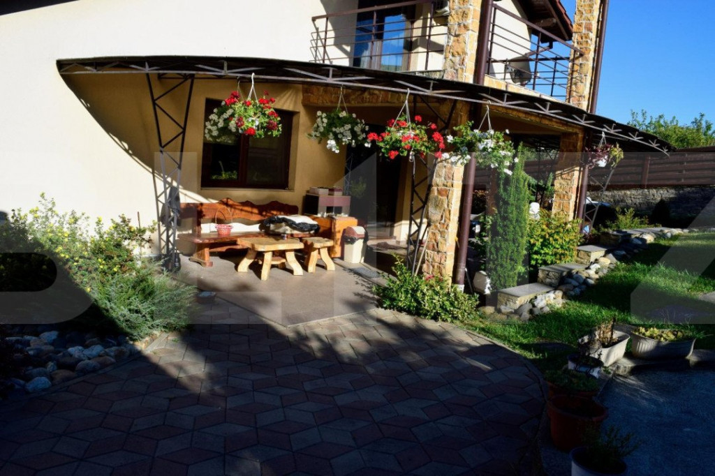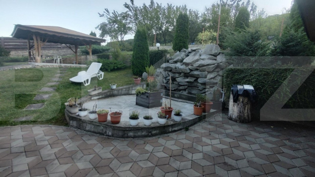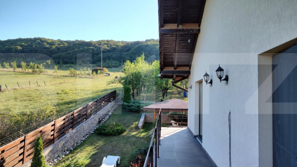 Blitz va ofera o vila de lux, la aprox. 35-40 minute de Cluj-Napoca. Terenul este format din curte de 700 metri pătrați și livadă amenajată și îngrijită de 6700 metri pătrați. În livadă sunt aproape o sută de pomi fructiferi productivi din soiuri deosebite. Livada este delimitată și are intrare directă la front (intrare independentă de intrarea în curte pentru a putea fi accesată independent de curte), și de asemenea intrare directă din curte (vezi imaginea satelit). Casa este excelent construită, cu materiale premium și spre deosebire de casele construite de dezvoltatori pentru profit aceasta a fost construită de proprietari, pentru ei, fără intenția de a o vinde. Există toate dependințele pe care și le-ar dori un cuplu din clasa medie cu o viață socială activă: două foișoare mobilate cu mobilă de exterior, două garaje încălzite, construite din cărămidă, cu acoperiș de țiglă și pod cu acces și cu luminatoare termopan, o cramă, un beci (construit sub unul dintre foișoare), o curte pavată spațioasă care poate acomoda 10-15 mașini, un țarc perimetral pentru câini astfel încât câinii să protejeze proprietatea fără a avea acces în curtea propriu-zisă. Compartimentarea casei: La parter un living spațios cu ieșire spre o terasă acoperită, o bucătărie spațioasă cu ieșire spre altă terasă acoperită, o baie. La etaj: 3 dormitoare, fiecare cu ieșire spre o terasă de mari dimensiuni, dressing, baie. Toate camerele sunt mobilate cu mobilă lux care intră în preț și rămâne pe poziții. La subsol există o cramă încăpătoare mobilată cu mobilier specific de cramă și o cameră tehnică unde este instalată pompa de căldură Sol-Apă 40kw, 600 ml coloane îngropate pentru schimb de căldură. Costurile cu încălzirea, apa caldă și răcirea sunt extrem de convenabile datorită pompei de căldură cu un randament de 400%. Pentru mai multe informatii, nu ezitati sa ne contactati! Cod ofertă / ID BLITZ: P93725 Id intern: P93725