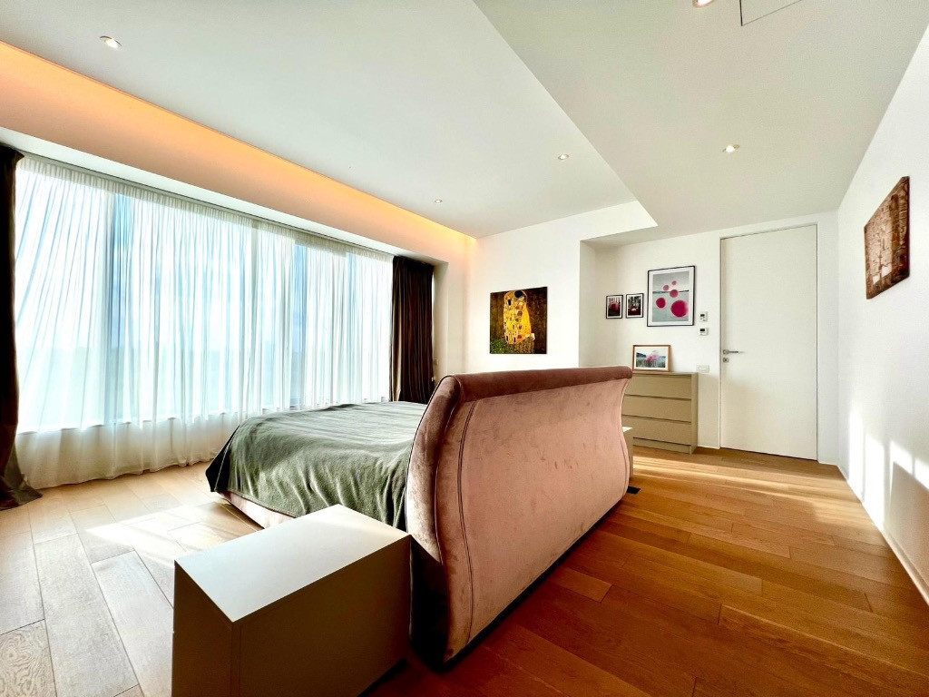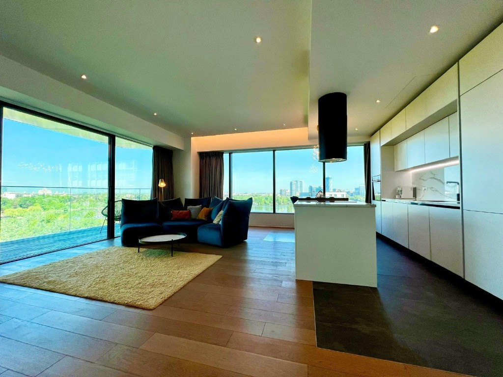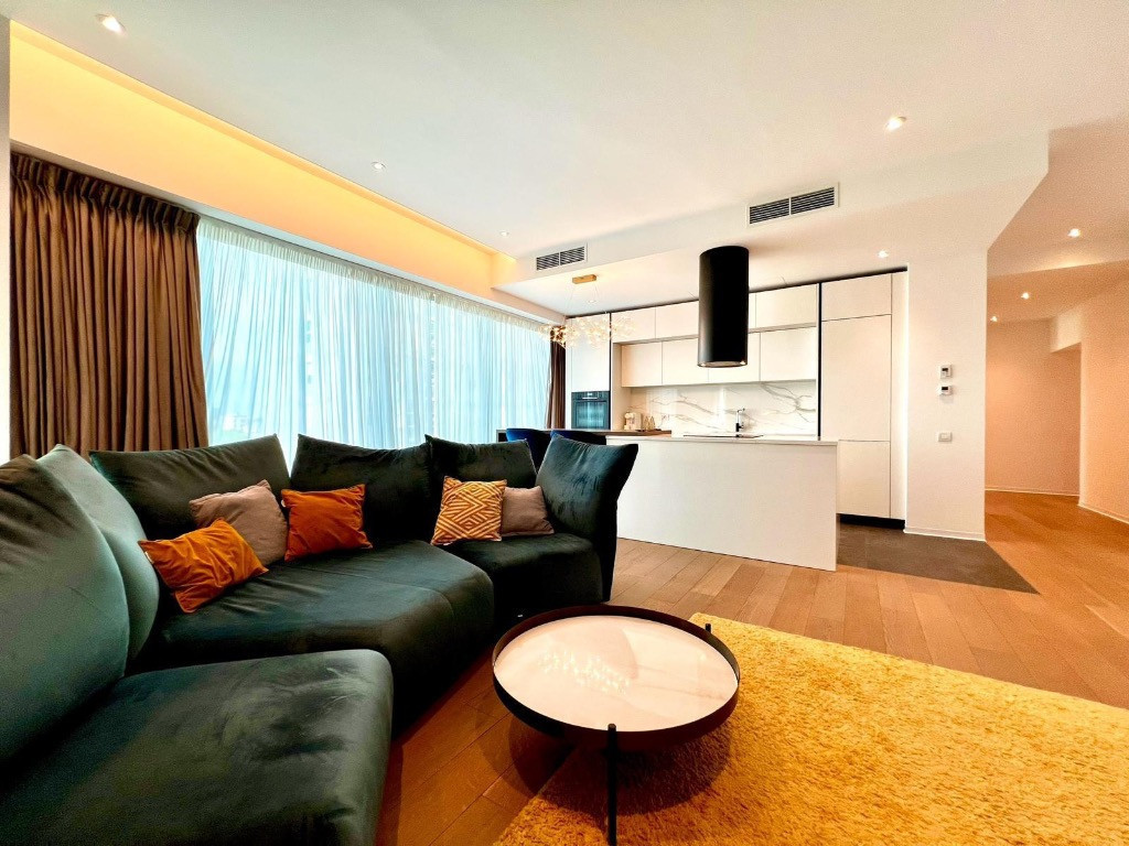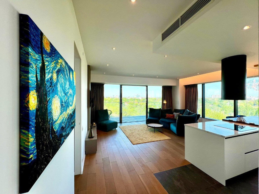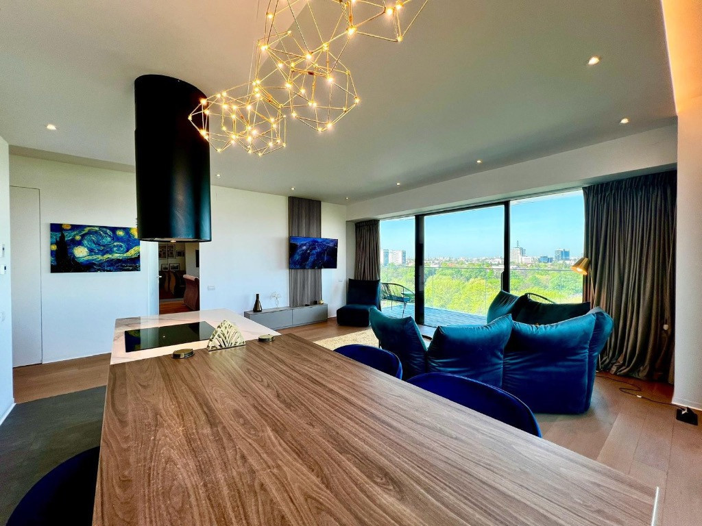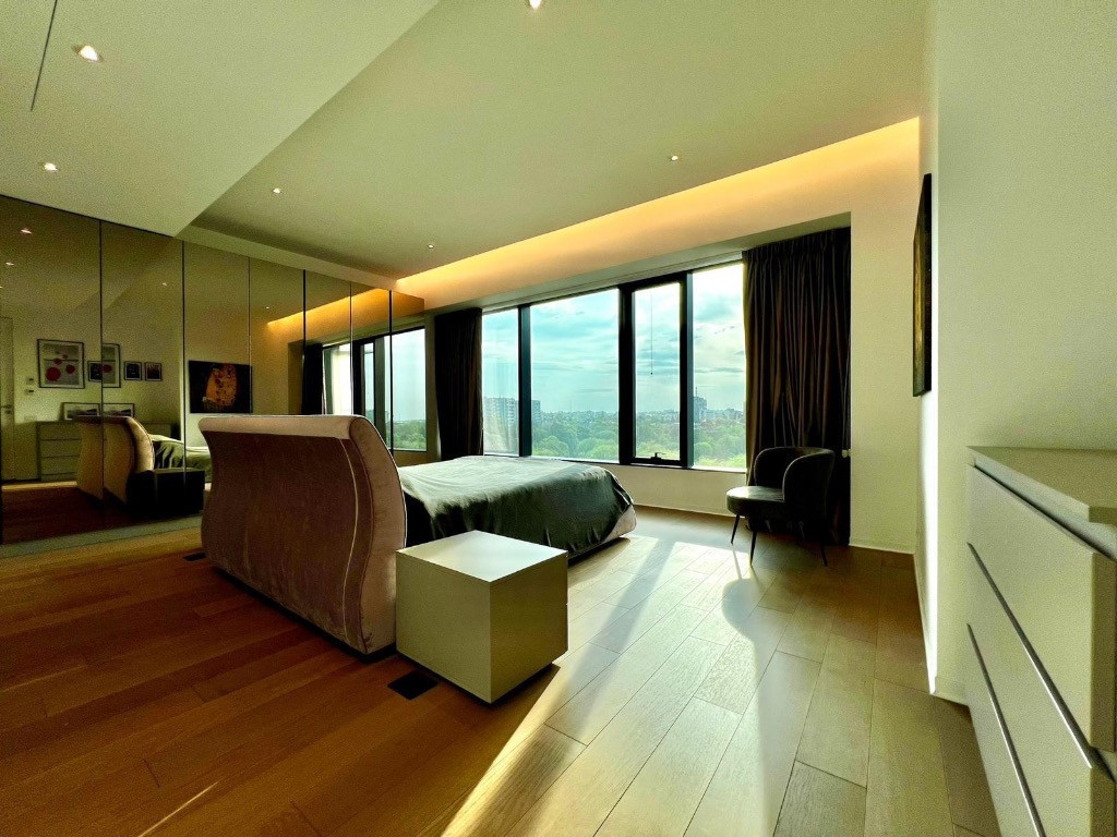 Apartament elegant cu 3 dormitoare în One Mircea Eliade – Tower 3, vedere superbă spre Parcul Floreasca Situat la etajul 7 al ansamblului exclusivist One Mircea Eliade – Tower 3, acest apartament elegant oferă 139 mp suprafață utilă totală, din care 127 mp interiori și o terasă de 12 mp cu o priveliște deosebită asupra Parcului Floreasca. Livingul spațios de 30 mp se deschide către terasă, creând o zonă de zi luminoasă și primitoare. Alături se află bucătăria modernă de 11 mp, care îmbină perfect funcționalitatea cu designul contemporan. Holul de intrare de 5 mp duce către un hol central de 8 mp, ce separă elegant zona de zi de cea de noapte. Apartamentul dispune de trei dormitoare: două dormitoare secundare de 13 mp fiecare, fiecare deservit de câte o baie proprie de 5 mp, și un dormitor matrimonial generos de 28 mp, cu o baie en-suite elegantă de 9 mp. Fiecare detaliu – de la finisajele rafinate până la compartimentarea gândită pentru confort și lumină naturală – reflectă standardele premium și stilul de viață contemporan caracteristic proiectului One Mircea Eliade.