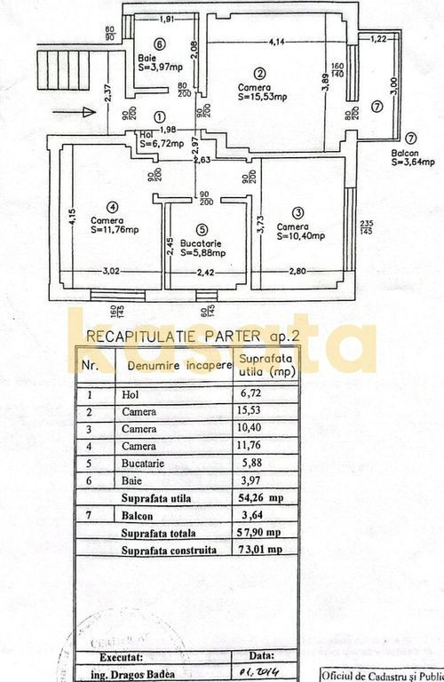 Situat la parter înălțat al unui bloc finalizat în noiembrie 2013, regim D+P+2+M
