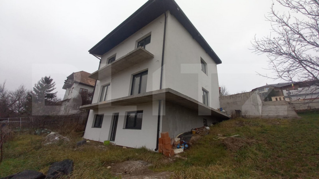 Blitz oferă spre vânzare o casa individuala situata in Baciu, într-o zona cu panorama având 240 mp utili, teren 340 mp si front 16 m la strada. Casa este construita in 2024, din cărămida Porotherm 30, izolație cu polistiren Austroterm 15 cm, ferestre si ușa la intrare PVC cu pachet 2 sticle termopan. Este dispusă pe trei niveluri, D+P+E, expunere sud-vestica, având următoarea compartimentare: - ETAJ 82mp : hol intrare, living si dinning de 37 mp acces către o terasa generoasa, bucătărie separata, cămară, baie, spațiu cu hol generos. - Parter 80 mp : hol intrare, 1 dormitor matrimonial cu dressing si balcon, 2 camere cu balcon, 2 bai. - Demisolul 80 mp cu dublu acces atat din casa scarii cat si din curte, se poate utiliza ca un apartament de 2 camere, baie+bucătărie. Acoperișul este cu țigla metalica izolat cu spuma poliuretanica celula închisă 8 cm. Se vinde la stadiul de semifinisat, cu pereți gletuiți, instalații termice si sanitare la poziție, centrala termica pe gaz. De asemenea, casa dispune de loc parcare pentru 3 mașini. Accesul se face de pe un drum asfaltat, iluminat stradal, cu toate utilitățile. Nu ratați ocazia, programați o vizionare ! Cod ofertă / ID BLITZ: P159019 Id intern: P159019