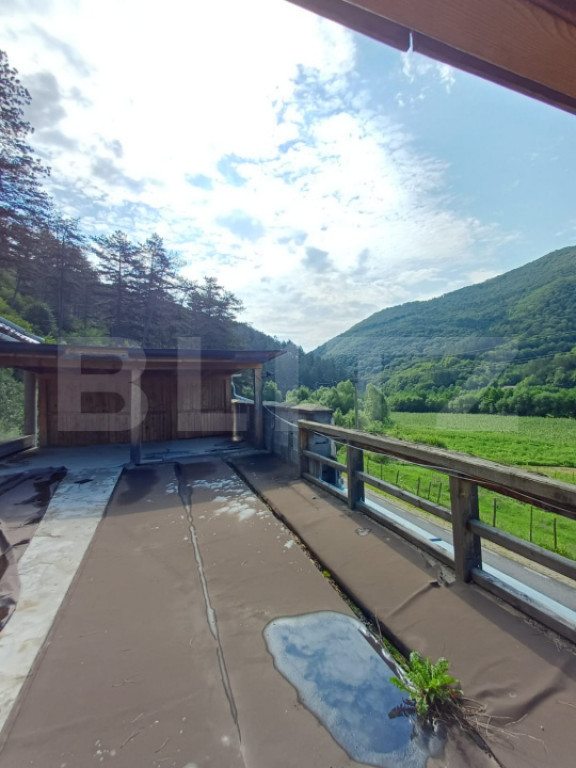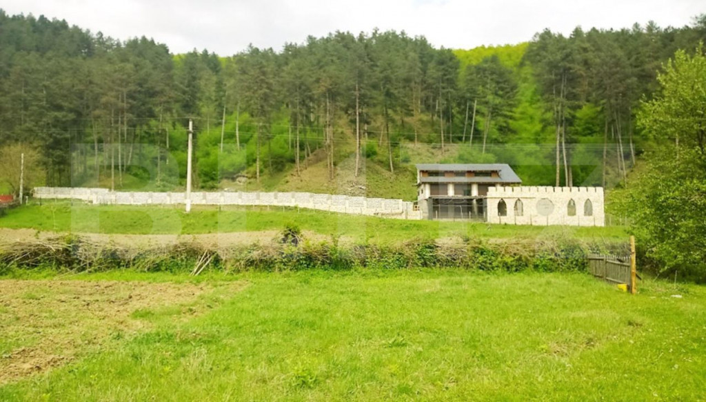 Blitz oferă spre vânzare o proprietate cu potential turistic, cu amprenta la sol 91 mp, dimensiuni construcție 7 m x 13 m, cu o suprafață totală de 247 mp. Construcția se dorește o îmbinare intre stilul mediteranean si cel medieval, în partea de NE fiind inițiată construirea unui turn iar gardul prezintă un segment care sugerează un zid de protecție crenelat cu elemente gotice. Accesul pe proprietate se face din DJ 107M acces asigurat indiferent de anotimp. Deschiderea totală la sosea este de cca 125 ml. Construcția este racordata la rețeaua publica de apa potabila. De asemenea este racordata la rețeaua de energie electrica, iar recent a apărut posibilitatea racordării la rețeaua de canalizare. Fiind orientata spre S este extrem de bine poziționată i vederea amplasării de panouri fotovoltaice. Stadiul de execuție a lucrării este “la gri”, fiind necesare lucrări de finisaj interior care pot fi realizate conform dorinței si bugetului noului proprietar. Proprietatea este structurata astfel: Zidarie parter din boltari de beton, armați si umpluți cu beton. La parter sunt prevăzute trei garaje cu uși automate tip rulou acționate din telecomanda, fără pereți despărțitori ceea ce permite o eventuală reconfigurare conform dorinței noului proprietar; dimensiunile ușilor de garaj L=3 m x H=2.5 m, iar in interior garajul are o înălțime de cca 3 m. Acces la etaj prin scara din lemn de stejar uscat in uscător, păstrată in culori natur; Accesul in locuința se face prin deschiderea unei uși culisante din stejar masiv care permite accesul la ușa din tamplarie de aluminiu cu geam termopan cu bariera termica. Etajul are aceeași suprafață de 91 mp ca primul nivel si este prevazut a fi un living mare cu trei geamuri tip vitrina, geamuri din tâmplărie de aluminiu cu sticla tripan si cu rulouri exterioare din aluminiu acționate prin telecomanda; Dimensiunea ferestrelor este de L 3 m x H 2.5 m asigurând practic întreagă fațadă sudica cu suprafață vitrata care pe lângă faptul ca poate fi obturata prin coborârea rulourilor, beneficiază de sticla tratată termic pentru limitarea pătrunderii căldurii pe timp de vara, respectiv pierderii căldurii interioare pe timp de iarna; Structural, nivelul este un living cu bucătărie open space si o baie mare, de asemenea cu scara interioară realizată din metal care duce la următorul nivel unde sunt prevăzute doua dormitoare cu en-suite fiecare; Scopul urmărit a fost acela de a realiza o casa pasiva d.p.d.v. energetic, profitând si de faptul ca pe jumătate casa este îngropată in pământ, in speță partea din spate a construcției a fost hidroizolata cu materiale de cea mai buna calitate împrejurare care conferă pe timpul verii o răcorire naturală respectiv pe timpul iernii o încălzire naturală, adică acest aspect înseamnă o factura de încălzire/răcorire cu cel puțin 50% mai mica decât in cazul unei locuințe obișnuite; Dacă sunteți în căutarea unei proprietăți multifuncționale, cu potențial mare de profit, această ofertă este alegerea perfectă! Contactați-ne pentru mai multe detalii sau pentru a programa o vizionare. Comision zero! Cod ofertă / ID BLITZ: P146778 Id intern: P146778