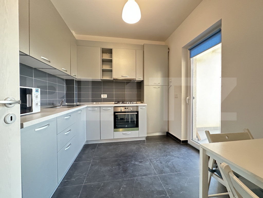 Blitz vă oferă spre vânzare un apartament tip studio de 49 mp, confort lux, într-un bloc construit în 2016, poziționat excelent în zona de Nord a orașului într-un ansamblu cu regim de înălțime redus. Acest ansamblu rezidențial modern a fost conceput pentru a oferi o experiență de locuit superioară: confort ridicat, eficiență energetică, facilități moderne și o comunitate rezidențială plăcută și sigură. Datorită poziționării, accesul către punctele importante ale orașului (centre comerciale, transport în comun, servicii) este facil, iar zona este recunoscută pentru liniște și calitatea locuirii. Nu rata această oportunitate de a investi într-un imobil situat într-o zonă cu cerere ridicată pentru închiriere- Dumbăvița. Acest apartament se vinde complet utilat și mobilat, fiind pregătit pentru mutare imediată. Dispune de o compartimentare eficientă: hol de acces, living cu acces spre balcon, dormitor, bucătărie închisă complet utilată, baie foarte spațioasă (cadă) . Încălzirea locuinței este realizată prin centrală termică pe gaz. Balconul de 5.5 mp are vedere spre zona verde din incinta complexului. Apartamentul dispune și de un loc de parcare în subteran care se poate achiziționa la prețul de 10.000 euro. Vă așteptăm la vizionări! Cod ofertă / ID BLITZ: P164832 Id intern: P164832