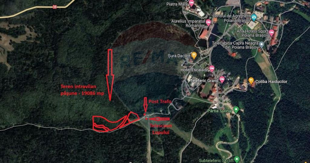 Agenția REMAX EVOLUTION vă propune spre vânzare, în regim de reprezentare exclusivă, cu comision 0% din partea cumpărătorului: Teren intravilan, păşune, 19086 mp, situat în Poiana Braşov, pe strada Valea Lungă, la 12 km de Braşov şi 7 km de Râşnov. Curentul este la 70 m, canalizare la teren, apa şi gazul la 250 m. În apropiere se află telescaun Lupului. Terenul este străbătut de râul Poiana care se varsă în lacul Mioriţa din Poiana Braşov. Potenţial de investiţie. Certificat de urbanism de informare în curs de obţinere. Terenul necesită PUZ. Vă mulțumim și vă stăm la dispoziție cu detalii suplimentare despre acest teren.