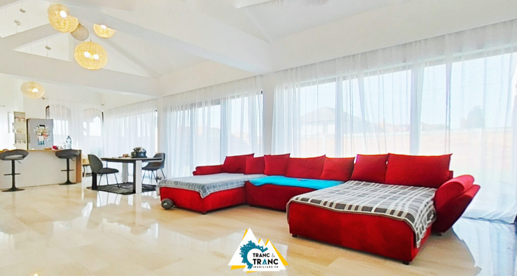 Oportunitate de vânzare – casă spațioasă și modernă cu 4 camere, în Livada Dacă îți dorești o locuință modernă, primitoare și bine poziționată, această casă cu 4 camere din Livada poate fi alegerea ideală. Situată într-o zonă liniștită, la doar câțiva kilometri de Arad, proprietatea oferă confortul unei case spațioase și dotări de top. Casa are o suprafață utilă de 236 mp (285 mp desfășurați) și este amplasată pe un teren generos de 956 mp, cu front stradal de 30 ml. La parter găsim un dormitor, o baie, un hol și o sufragerie foarte spațioasă cu bucătărie open-space, iar la etaj două dormitoare luminoase, fiecare cu balcon, dormitorul matrimonial fiind prevăzut cu dressing și mobilier pe comandă. Confortul este completat de garajul încălzit, cu ușă automată, terasa acoperită și încăperea tehnică dotată cu centrală pe lemne, puffer de 2000 litri, instalație de dedurizare și panouri solare pentru incalzirea apei. Curtea dispune de gazon tip rulou și sistem de irigații, iar casa beneficiază de încălzire în pardoseală, curent trifazic și izolație de calitate. Construită în 2014 și renovată în 2020, proprietatea se vinde complet mobilată și utilată, fiind pregătită să își primească noii proprietari. Este alegerea perfectă pentru cei care caută spațiu, liniște și un cămin modern, aproape de oraș. Te invităm să descoperi personal tot ce are de oferit această casă. Programează chiar acum o vizionare și lasă-te convins de confortul, spațiul și liniștea pe care le poate oferi noul tău cămin din Livada.