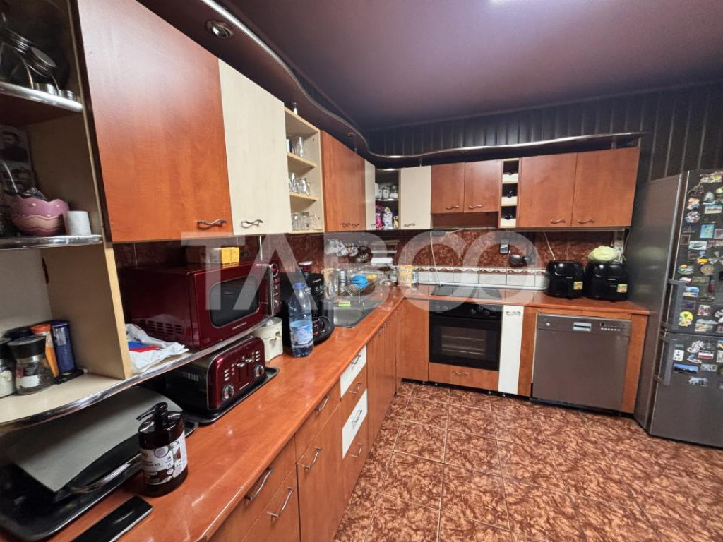 Cauti o casa spatioasa in Sibiu pentru tine si familia ta? Vrei sa ai un stil de viata exclusivist intr-una din cele mai cautate zone din Sibiu? TABOO Imobiliare iti propune aceasta casa de vanzare cu 5 camere in zona Tiglari, Sibiu. Casa are un stil modern si este situata in una dintre cele mai cotate zone pe piata imobiliara din orasul Sibiu. Suprafata construita este de 236 mp, pe un teren cu suprafata totala de 500 mp si casa cu suprafata utila de 180 mp. Structura cladirii este realizata din caramida, are sistem de incalzire cu centrala pe lemne si sistem fotovoltaic de 10 kw, sistem de supraveghere video cu alarma. Casa este complet mobilata si utilata, curent electric, apa, canalizare, curent trifazic, catv, acces internet, fibra optica. Casa este compartimentata si este compusa din: ~ Demisol: spatiu depozitare; ~ Parter: hol, living, baie, bucatarie, terasa, spatiu tehnic, spatiu comercial, gradina si loc de relaxare ( spatiu de barbeque) ~ Mansarda: hol, 4 dormitoare, baie, balcon; ~ Pod depozitare. In partea exerioara a casei se regaseste o curte libera de 372 mp cu locuri de parcare, loc pentru zona de joaca a copiilor, 1 terasa de relaxare si spatiu de depozitare. Imobilul este situat in apropiere de facultati, insitituii publice, insitutii bancare, scoli si statii pentru mijloace de transport public. Finisajele interioare sunt moderne: ~ Usa intrare: pvc; ~ Usi interioare: celulare; ~ Tamplarie ferestre: pvc, termopan; ~ Podele: parchet, gresie; ~ Finisaj: finisat; ~ Pereti: vopsea lavabila, faianta. Pret: 365.000€ Cod ofertă / ID: P25695 Sună-ne acum la 0369.822.820 și află detalii despre această proprietate de vanzare din Sibiu, dar și despre alte proprietăți potrivite pentru tine. Informatii speciale: 1. Descarcă aplicația pe mobilul tau "TABOO Imobiliare" din Apple Store, Google Play sau Huawei AppGallery pentru a afla instantaneu noile proprietăți care intră pe piață. 2. Dacă ai o proprietate pe care vrei să o vinzi sau să o închiriezi, suntem aici pentru tine! Contactează-ne pentru o evaluare gratuită fără obligații și vei descoperi avantajele de a lucra cu o echipă dedicată și experimentată. 3. Dacă vrei sa incepi o cariera de agent imobiliar, suna la 0369.822.820 si programeaza o intalnire pentru a afla toate beneficiile si avantajele. Intră pe TABOO.ro și descoperă cele mai recente oferte, actualizate zilnic. Anunt actualizat in 17 decembrie 2025. Id intern: P25695