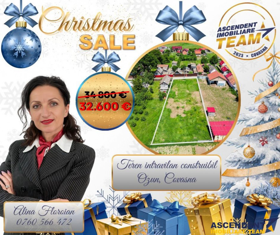 este onorata sa va propuna spre vanzare o REPREZENTARE IMOBILIARA, personalizata printr-un teren intravilan, oportunitate pentru constructii case/ vile, rezidente de vacanta si similare, situat in comuna Ozun, Judetul Covasna.