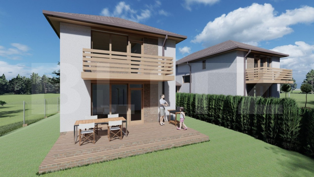 Blitz Imobiliare vă oferă spre vânzare o casă individuală situată într-o zonă liniștită și aerisită din Dezmir. Detalii imobil: Suprafață teren: 380 mp Suprafață utilă: 119 mp Structură: 2 niveluri Parter: living, bucătărie, birou, baie, hol, terasă de 10 mp Etaj: dormitor matrimonial cu dressing și baie proprie, 2 dormitoare, baie, balcon de 6.75 mp Facilități: Loc de parcare acoperit Semifinisat interior: instalații sanitare și electrice montate, sapa de egalizare, pereți tencuiți, strat de glet Centrala termică proprie și încălzire prin pardoseală Geamuri termopan cu tâmplărie Salamander Finisaje exterioare: Tencuială decorativă și piatră naturală Trotuare, garduri cu fundație din beton și panouri de gard Zone verzi pregătite pentru amenajare Termen de finalizare: Luna septembrie 2025 ! Cod ofertă / ID BLITZ: P3034 Id intern: P3034