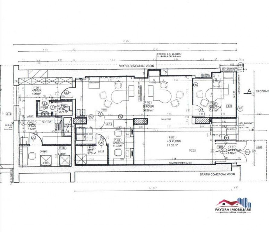 Oportunitate! Spatiu Comercial de Inchiriat Zona Fortuna Fayora Imobiliare va ofera spre inchiriere un spatiu comercial situat intr-un vad comercial foarte bun in zona Fortuna, avand o suprafata de aproximativ 107 mp utili. Principalul aspect, fiind vorba de un spatiu comercial este traficul pietonal foarte crescut in zona. Imobilul este compus din: o incapere spatioasa open-space, un birou, o bucatarie si doua holuri. Spatiul are doua intrari, una pentru clienti si una pentru aprovizionare si este dotat cu central#259; termic#259;, gresie, faianta, geamuri termopan, aer conditionat si alarma. Este ideal pentru banca, salon de infrumusetare, magazin alimentar, cofetarie, magazin de imbracaminte, librarie, florarie, etc. In apropiere se afla magazine, statie de autobuz, farmacii, banci, restaurante, etc. Exista posibilitate de parcare in fata sau in spatele imobilului. Pretul de inchiriere lunar este de 2200 euro. Contactandu-ne pe noi, daca sunteti clienti cumparatori beneficiati de servicii de consultanta gratuita si nu vi se va percepe comision. Suntem pregatiti si hotarati sa va oferim cele mai bune solutii in domeniul imobiliar, fie ca este vorba de cele mai competitive preturi, oferte personalizate conform cerintelor dvs. sau de asistenta pe intreaga durata a efectuarii tranzactiei. Cu responsabilitate, echipa Fayora Imobiliare face ca lucrurile sa se concretizeze, face ca oamenii sa isi indeplineasca visurile.
