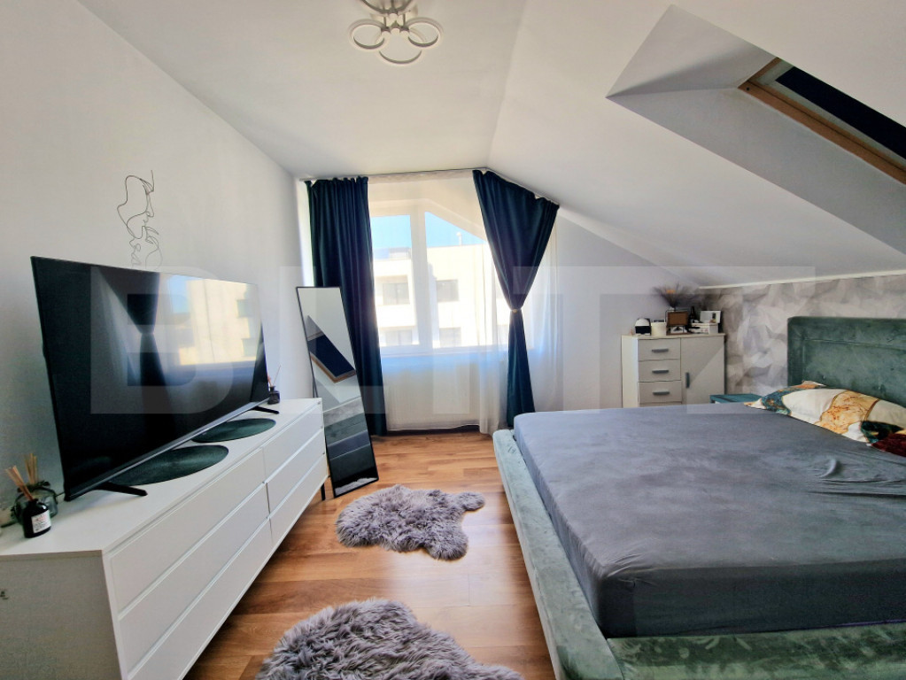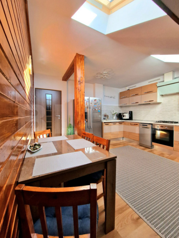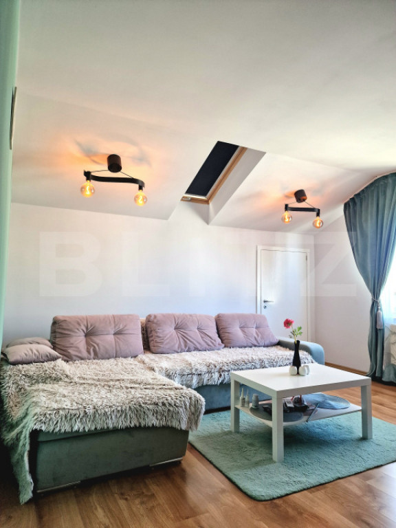 Blitz va propune unul dintre cele mai spațioase apartamente din Florești. Cu o suprafață utilă de 81 de metri pătrați + 40 de metri pătrați ( formați din 2 debarale și 1 dressing ), localizat în inima floreștiului, această proprietate este în acest moment, cea mai corectă ofertă raport suprafață-calitate-preț-poziționare. 2 Camere extrem de spațioase și luminoase, dotate cu mobilier si electrocasnice de calitate superioară ( TV cu o diagonală imensă în ambele camere). 1 Living open-space cu bucătărie foarte luminată și spațioasă, dotată cu masină de spălat, uscător, cuptor,mașină de gătit, aparat de cafea, frigider, hotă, etc. 1 baie extrem de placută, cu mult spațiu, lumină naturală, incredibil de frumoasă. 1 dressing suficient de incăpător pentru o familie, 1 cămară, un spațiu de depozitare imens. Apartamentul beneficiază de parcare lângă bloc. Situat la mansardă, etaj 4, al unui bloc central din Florești, aproape de magazine non-stop, farmacii, bănci, stații de autobuz, piață, etc. Apartamentul detine si 2 locuri de parcare contracost. Nu există o ofertă mai corectă, mai spațioasă și mai bine poziționată niciunde în Florești sau Cluj. Cod ofertă / ID BLITZ: P148133 Id intern: P148133