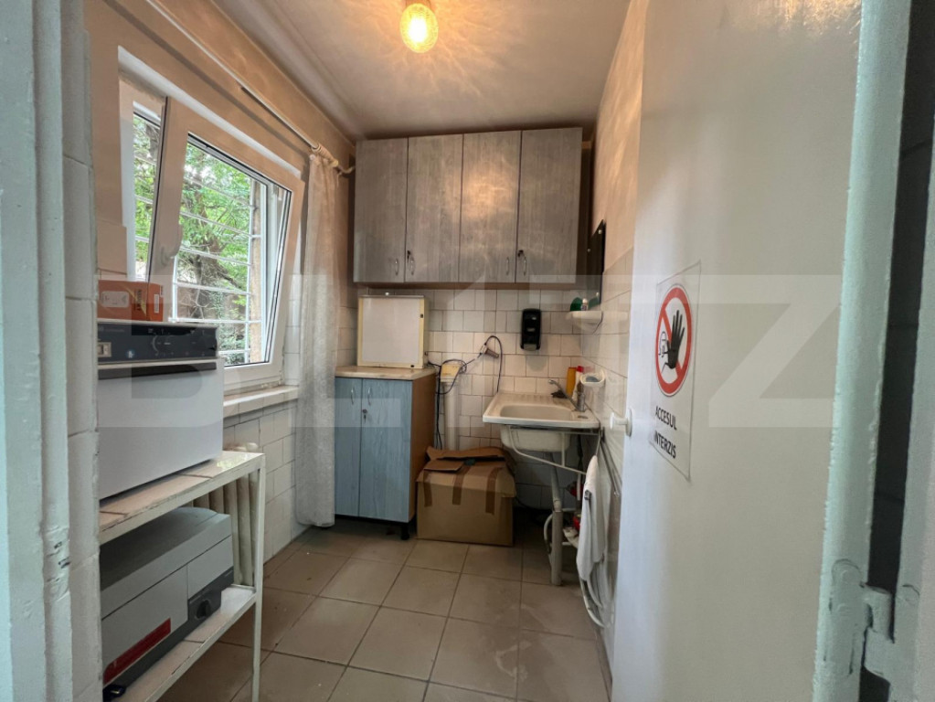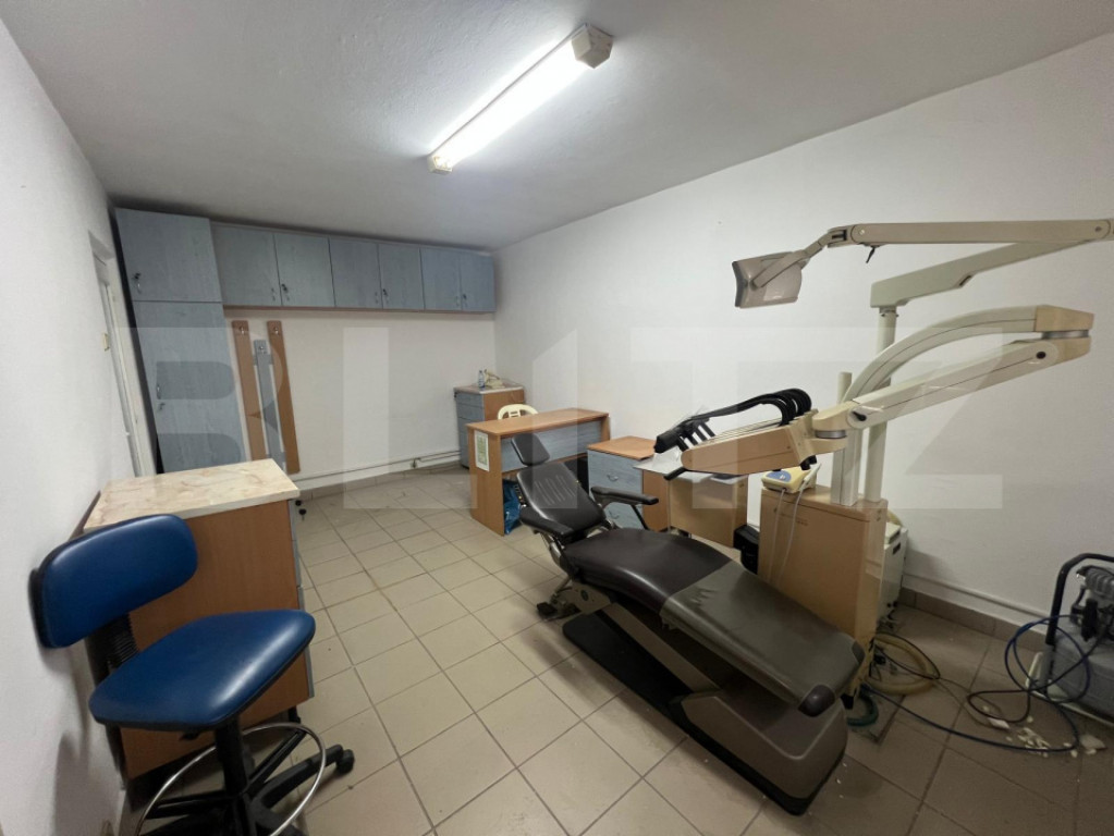 BLITZ oferă spre închiriere acest cabinet stomatologic complet echipat, cu o suprafață totală de 28 mp, situat la parterul unui bloc din zona Valea Roșie, Craiova – o oportunitate unică pentru orice medic stomatolog care dorește să își desfășoare activitatea într-o zonă fără concurență directă. Amplasat într-un cartier dens populat și lipsit în prezent de alte cabinete stomatologice, acest spațiu medical beneficiază de acordul vecinilor și are deja destinația legală de cabinet stomatologic, un aspect esențial care economisește timp și efort în demararea activității. Spațiul este compartimentat eficient, fiind format dintr-o zonă de așteptare pentru pacienți, cameră de sterilizare, grup sanitar cu toaletă separată pentru medic și pacienți, precum și un salon principal echipat cu scaun stomatologic, lampă și alte dotări specifice. Spațiul dispune și de aer condiționat pentru un confort termic optim pe tot parcursul anului. Cabinetul este funcțional dar necesită renovare. Proprietarul este deschis la acoperirea unor costuri pentru mici modificări sau poate colabora cu viitorul chiriaș pentru îmbunătățiri. Este o alegere ideală pentru medici stomatologi la început de drum, cabinete de proximitate sau extinderea unei francize într-o zonă cu potențial ridicat. În concluzie, această proprietate reprezintă o alegere strategică pentru orice profesionist în domeniul stomatologic care caută un spațiu legal, funcțional și amplasat într-o zonă fără competiție. Vă așteptăm cu drag pentru o vizionare și mai multe detalii! Cod ofertă / ID BLITZ: P148826 Id intern: P148826