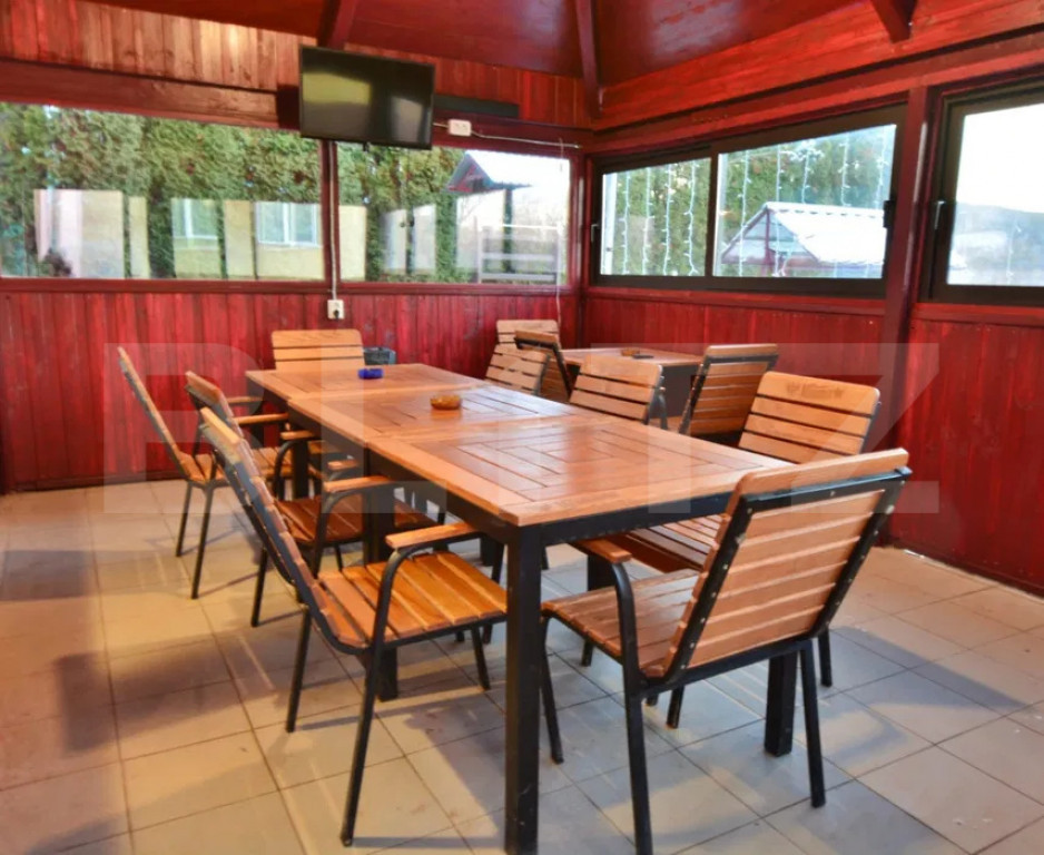 BLITZ vă oferă în exclusivitate, spre vânzare cu comision 0%, o vilă cu randament de 3000 Euro/lună până în decembrie 2027. Imobilul este situat în mijlocul naturii, pe Valea Almașului, dispune de un teren generos de 2000mp într-un peisaj feeric, la doar 30 minute de Cluj-Napoca sau Zalău, aproape de E81 și de viitoarea ieșire de pe autostrada Cluj-Zalău. Casa este potrivită atât pentru investiție în scopul închirierii către turiști cât și pentru casă de vacanță pentru a evada într-o oază de liniște. Vila poate fi introdusă în circuitul Airbnb/Booking sau închiriată în continuare actualilor chiriași pentru suma de 15000RON/lunar. Imobilul este racordat la utilități, apă, curent trifazic, accesul fiind unul facil pe drum privat asfaltat. Se vinde complet mobilată, la parter având un living, bucătărie, 3 domitoare și 3 băi. La etaj se urcă pe o scară interioară elegantă placată cu marmură, unde se găsesc 3 dormitoare, două balcoane. Casa este construită lângă râul Almaș, pe un domeniu de 2000mp cu gazon, arbuști onamentali și alei pavate elegant și fântână arteziană în mijloc. În curtea vilei se află o zonă de agrement compusă din piscină, saună, ciubăr și un teren de minifotbal. Imobilul dispune de o terasă de 40mp placată cu gresie din Spania, foișor închis dotat cu un șemineu pe lemne, vatră cu băncuțe pentru foc de tabără, balansoar, zonă de grătare cu plită pentru ceaun. Casa are beci spațios, o cameră tehnică separat, unde se află centrala pe lemne cu puffer cu 3 serpentine de 1000l , lemnărie amenajată și acoperită. Nu ezitați să contactați brokerii BLITZ pentru detalii și vizionare! Comision 0% la cumpărare! Cod ofertă / ID BLITZ: P156403 Id intern: P156403