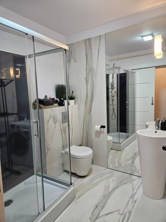 Va prezentam la vanzare o oferta deosebita: apartament complet mobilat si utilat nou, modern si elegant,tip loft, compus din 3 camere, cu suprafata de 150 mp utili, 2 dormitoare, fiecare cu baie proprie, situat la etajul 3 intr-un bloc D+P+3, cu lift. Apartamentul este situat central, in apropiere de strada Polona, la 5 min de statia de autobuz si 10 min de viitoarea statie de metrou Tokyo. Primul nivel : hol intrare, living open space bucatarie, baie(toaleta, lavoar, cabină de duș), terasă bucătărie cu grătar pe gaz, terasă living, suprafața utila 75 mp Nivelul 2: Hol cu spațiu de depozitare, dormitor cu baia proprie(lavoar, toaletă, cabină de dus) și terasă, dormitor matrimonial mare cu dresing și baie proprie(lavoar, toaletă, cabină de duș, cada), suprafața 75 mputili. Al doilea nivel are luminatoare Velux(cu jaluzele incorporate) si o terasa cu vedere frumoasa. Apartamentul este dotat cu centrală termică Ariston cu programare de la distanță prin wifi. La primul nivel încălzirea este prin pardoseala, la cel de-al doilea nivel încălzirea este asigurată de calorifere. Toate camerele sunt prevăzute cu aer conditionat controlabil de la distanță prin wifi. Usa de la intrare este metalică, de înaltă siguranță. Loc de parcare si boxa la subsol de 12 mp. Pentru orice informatie va rog sa ma sunati la nr tel 0747080810, Radita Craciun