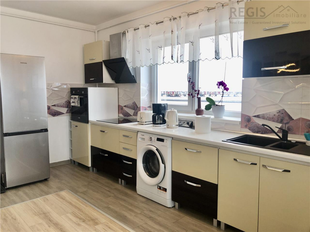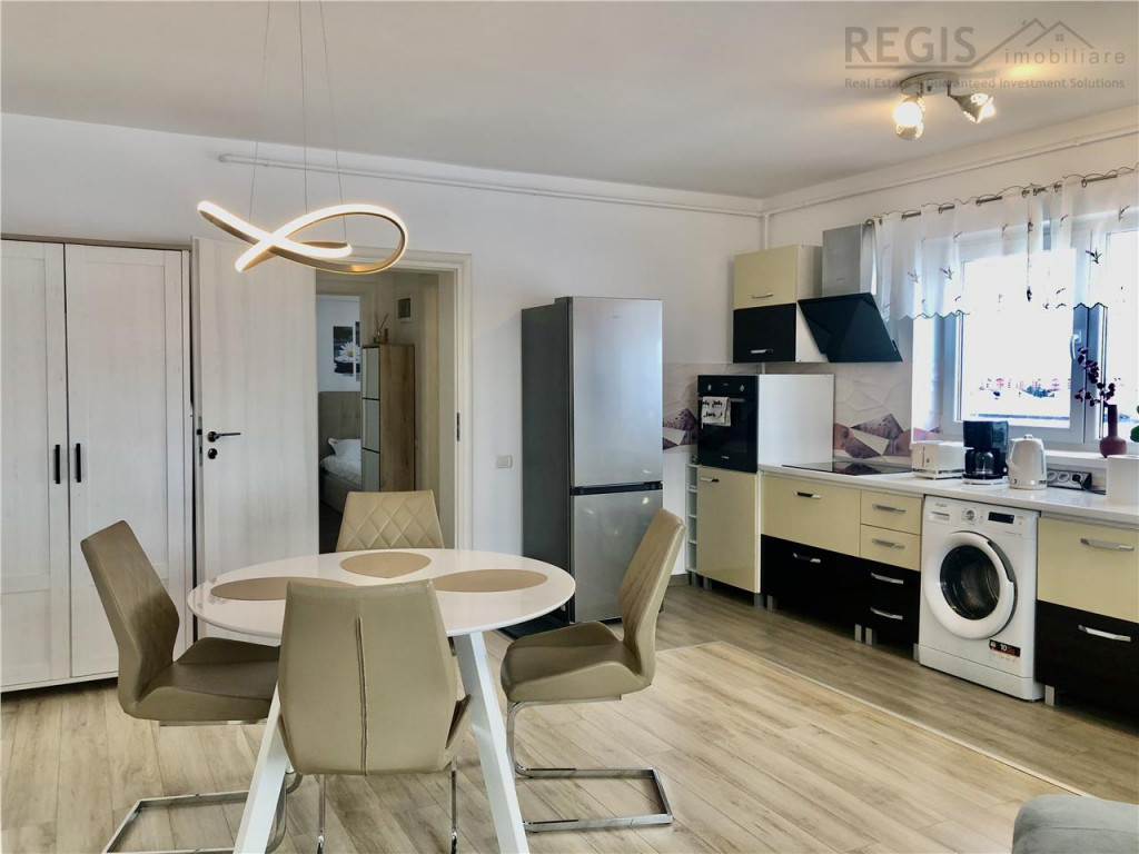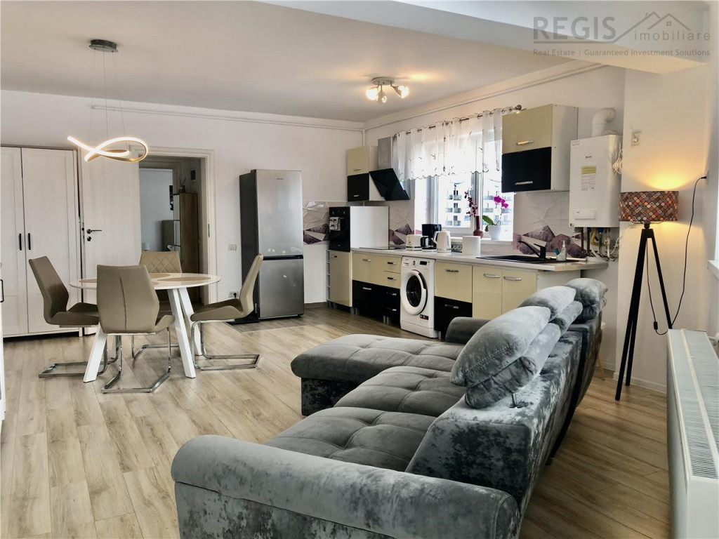 ID: 6131 REGIS Imobiliare va propune spre vanzare apartament cu 2 camere, open space, 55 mp, situat pe Str. Orizontului, etaj intermediar (4/6), in bloc nou. Apartamentul este complet mobilat si utilat, gata de locuit sau pentru investitie. A generat venituri din inchiriere pe termen scurt. Dotari: - Bucatarie mobilata si utilata complet: cuptor Bosch, frigider Samsung, hota, plita pe inductie, - Masina de spalat rufe, televizor Samsung (diagonala120 cm), - Iluminat cu comanda vocala, - Termostat inteligent,controlabil de la distanta. Locatie: Bloc nou, cu spatii verzi, zone de relaxare, loc de joaca si teren de sport. Proximitati cu magazine, statie autobuze, acces rapid catre Aeroport, Gara BV,, in apropiere sunt scoli, gradinite, licee, Mall Coresi. Pretul locatiei nu include parcare, insa exista disponibilitate de achizitie a unui loc de parcare. La tranzactionare se plateste un comision de 2% TVA la pret de tranzactie.