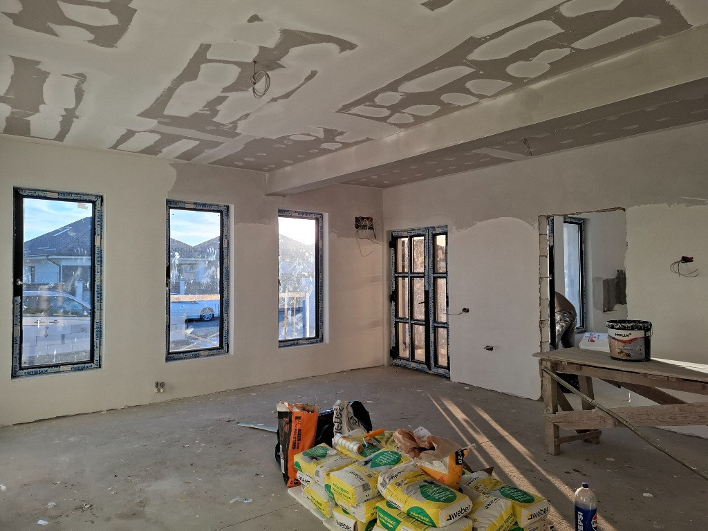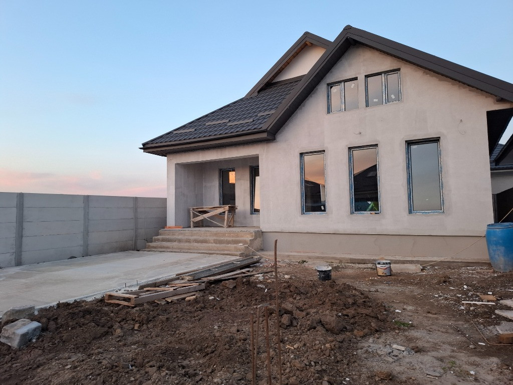 Pantelimon Oras,parter,c"tie 2025,zona vile noi,zona Tineretului,Steren = 300mp,Sconstruita la sol=97mp,terasa acoperita la intrarea in casa,living +bucatarie inchisa+2 bai+2dormitoare(din care unul matrimonial cu baie),podul inalt pe grinzi de lemn cu scandura si sapa cu plasa de buzau,se izoleaza cu spuma de celuloza,podul este cu geamuri termopan,casa se preda finisata(gresie,faianta,parchet,obiecte sanitare,centrala termica pe gaz,calorifere),cu utilitati racordate, functionale cu contracte si contoare(gaz,curent,apa de la retea, canalizare),in jur sunt vile locuite,acces strada lata pietruita,se accepta credit bancar(NU CREDIT LA DEZVOLTATOR),NU COLABORAM CU AGENTII, pret 146000 euro (TVA inclus in pret) comision 0%