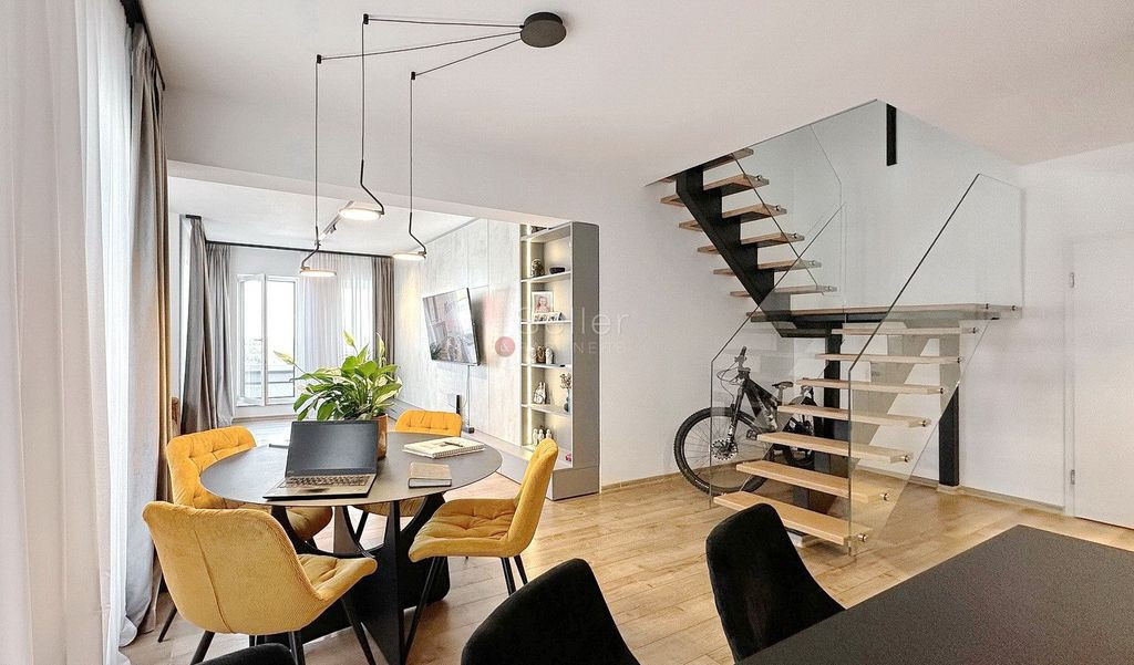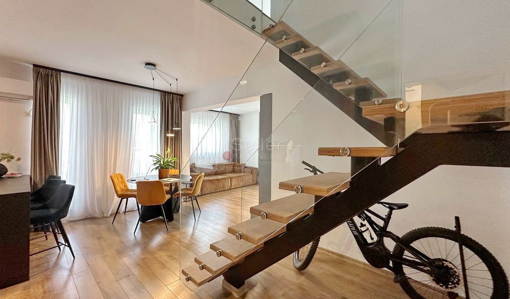 LOCALIZARE: Acest penthouse este situat in Bartolomeu. COMPARTIMENTARE: - Zona de zi, care detine suprafete vitrate mari, cu acces la terasa de 33,1 mp; - Bucataria, de tip open space, cu deschidere la terasa de 10,78 mp, fiind mobilata si dotata; - Casa scarii, fiind dotata cu sticla securizata; - Dormitorul, care dispune de dressing si balcon propriu; - Dormitorul matrimonial, beneficiaza de baie si dressing; DOTARI: - centrala termica pe bloc; - tamplarie PVC, cu geam termopan; - aer conditionat; - incalzire in pardoseala; - boxa la subsol; - loc de parcare suprateran, acesta este optional- 10.000 Euro. Tranzactionarea proprietatii se va face cu mobilierul aferent prezentei ofertari. IMPREJURIMI: Imobilul este situat intr-o zona de blocuri, accesul auto, pana in zona de centru a orasului, facandu-se in cca. 15 minute. ATRACTII ZONA: Magazine, restaurante, parcuri, școli, clinici. ACCESIBILITATE: Transport public în apropiere | la aproximativ 20 m. FORMA ACHIZITIONARE: Se accepta plata prin accesare credit. Comision de intermediere 2%+TVA. NOTA: Informatiile prezentate reflecta situatia reala a proprietatii, fara a constitui o oferta contractuala. Aceste date au fost obtinute verbal, de la titularul de drept al imobilului. Structura acestei prezentari nu poate fi reprodusa, fara acordul scris al The Seller and Partners.