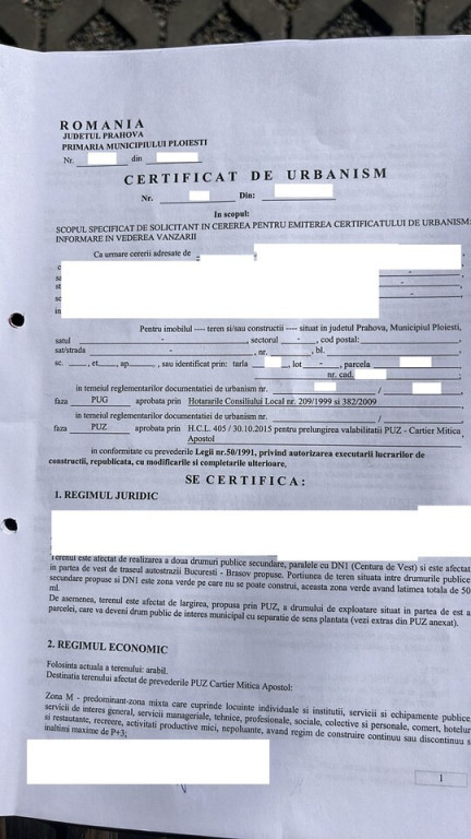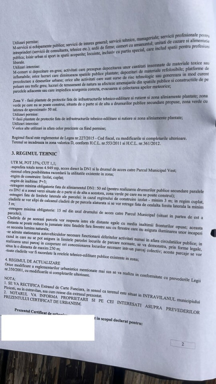 Centura de Vest Ploiesti, in dreptul Parcului Municipal Vest, teren intravilan industrial in suprafata de 4949mp cu o deschidere de 16 ml. Terenul are dubla deschidere la Centura de Vest si la drumul de acces in Parcul Municipal . Acte la zi , inclusiv vertificat urbanism. Pret vanzare 150000 euro.