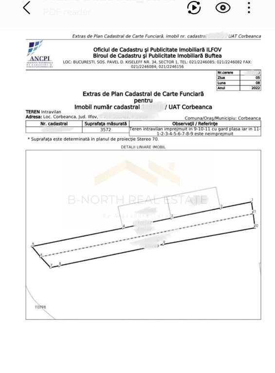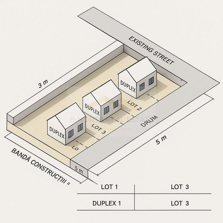 B-North Real Estate Va prezinta spre vanzare teren cu oportunitate de dezvoltare, vedere catre lac . Suprafață totală: 3.572 mp Deschidere la Strada Cetății / lac: 23,02 m Regim urbanistic: UTR F – locuințe individuale POT: 30% CUT: 1.0 Regim de înălțime: P+2E+M Acces: dublu – Strada Cetății + potențial drum privat 5 m pe latura dreaptă ???? PUNCTE CHEIE ✔ Deschidere directă la lac Priveliște superbă, ideală pentru dezvoltări premium: vile, duplexuri, ansamblu boutique. ✔ Teren intravilan cu formă avantajoasă Se potrivește perfect pentru dezvoltări 3–6 unități cu orientare către lac. ✔ Acces excelent Strada Cetății + posibilitate de drum privat → facilitarea accesului la proiect și a etapizării construcției. ✔ Indicatori urbanistici generoși (UTR F) Permit un proiect cu arhitectură modernă, deschideri mari vitrate și suprafețe ample. ✔ Zonă în plină dezvoltare Înconjurat de alte proiecte noi, ideal pentru investitori care urmăresc potențial de creștere accelerată. ???? POTENȚIAL DE DEZVOLTARE Terenul permite: ???? 3 duplexuri cu vedere integrală la lac ???? 3 vile individuale cu drum privat de acces ???? un ansamblu boutique cu acces controlat ???? concept de tip „lake retreat” / wellness Forma terenului permite amplasarea caselor în evantai, maximizând panorama lacului pentru fiecare unitate. ???? LOCAȚIE Situat pe Strada Cetății – Corbeanca, cu acces direct la lac, înconjurat de natură, liniște și dezvoltări noi premium. La doar câteva minute de: DN1 școli și grădinițe restaurante și centre comerciale transport convenabil către București ???? RECOMANDAT PENTRU: dezvoltatori imobiliari investitori privați proiecte premium cu randament ridicat ansambluri cu vedere la lac Pentru mai multe detalii si vizionari va rugam sa ne contactati!