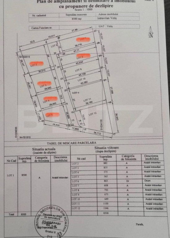 Oportunitate de investiție! Terenuri în zona Vetis cu PUZ aprobat și utilități în apropiere Vrei să îți construiești casa de vis într-o zonă liniștită și prietenoasă? Acum ai șansa să cumperi una dintre cele 5 parcele de teren, situate în pitoreasca zonă Vetis, cu suprafețe cuprinse între 565mp și 882mp și front stradal între 15m și 28m. Aceste terenuri beneficiază de un Plan Urbanistic Zonal (PUZ) aprobat, oferindu-ți flexibilitate în a construi casa perfectă pentru tine și familia ta. Regimul de înălțime permis este P (parter), P+1 (parter plus un etaj) sau P+1+M (parter plus un etaj și mansardă). Astfel, poți construi spații generoase și confortabile, adaptate nevoilor tale și stilului de viață. Unul dintre cele mai mari avantaje ale acestor terenuri este accesibilitatea. Situate la mai puțin de 100m de strada principală, pe o stradă adiacentă, vei avea liniștea și intimitatea de care ai nevoie. Nu trebuie să-ți faci griji cu privire la utilități deoarece apa, canalizarea, gazul și curentul sunt deja disponibile în zonă, asigurându-ți confortul și comoditatea. Această oportunitate este una pe care nu vrei să o ratezi! Profită acum de prețurile competitive și asigură-ți un viitor luminos în noua ta casă din zona Vetis. Pentru mai multe informații și pentru a programa o vizionare, sună acum sau vizitează-ne la sediul nostru BLITZ din oraș. Nu rata șansa de a investi într-un teren ideal pentru viitoarea ta locuință! Actul de proprietate este pregătit și așteaptă să poarte numele tău. Cod ofertă / ID BLITZ: P11703 Id intern: P11703