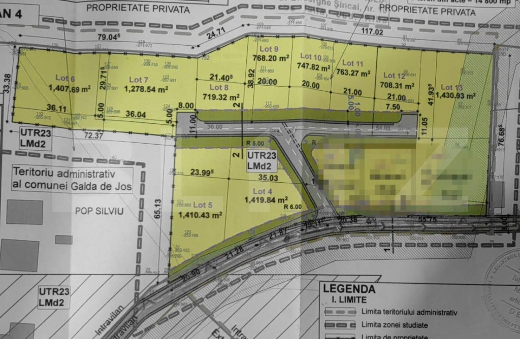 Parcele intravilane cu suprafata cuprinsa intre 708 - 768 mp