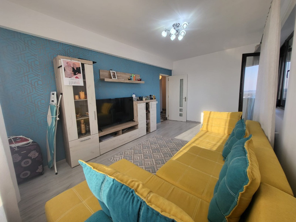 Apartament cu 2 camere de VANZARE: Apartamentul are o suprafata de 49mp + 5mp balcon si este situate la etajul 5/5(blocul are placa de beton, pod si este izolat de catre proprietar cu polistiren de 10cm – vezi pozele -). Imobilul este dispus in felul urmator:1 living, 1 balcon, 1 bucatarie, 1 dormitor, 1 baie.