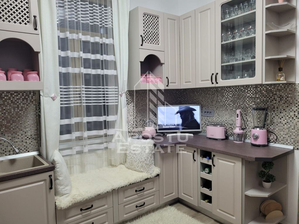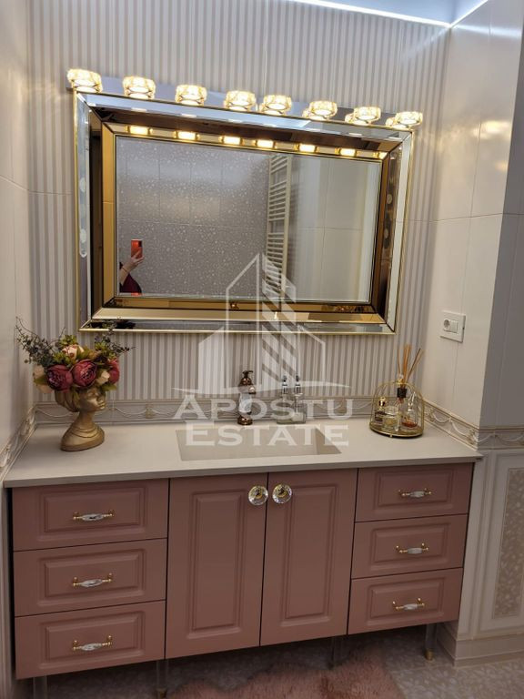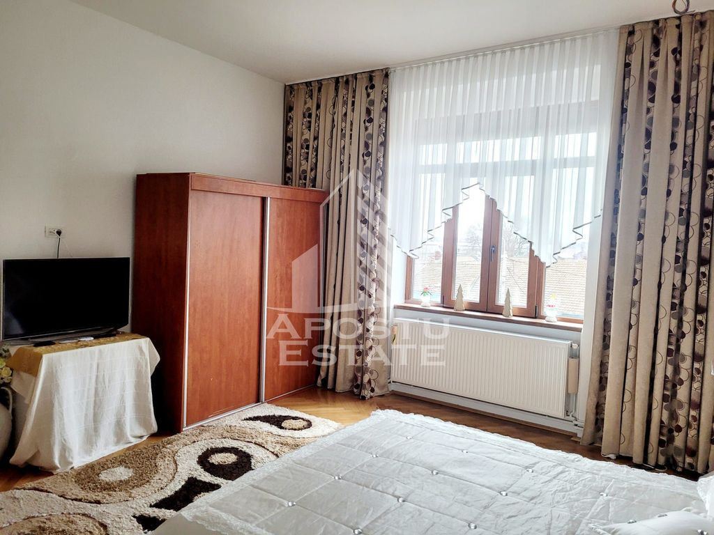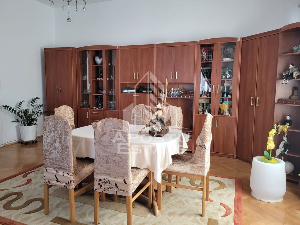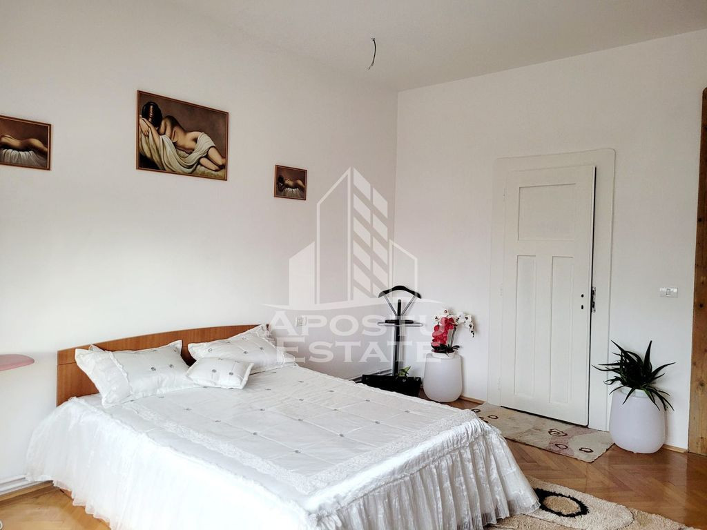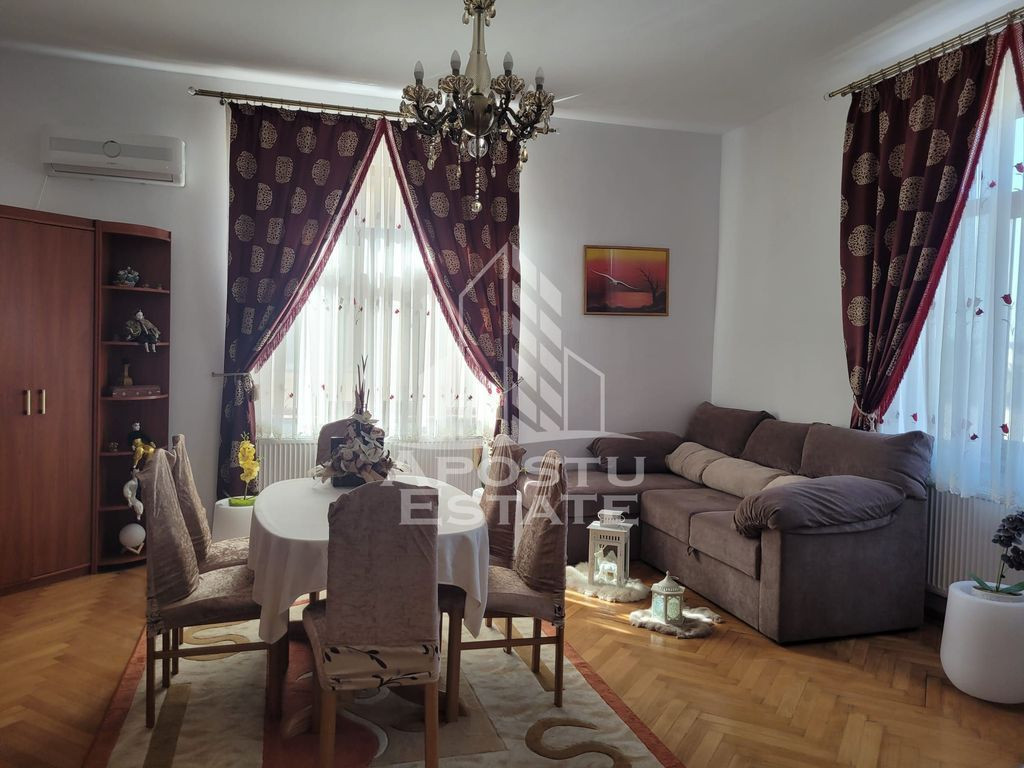 Apostu Estate vă propune spre vânzare un apartament cu adevărat special, situat în inima cartierului Iosefin – una dintre cele mai frumoase și căutate zone din Timișoara. Localizat într-o clădire istorică cu arhitectură deosebită, acest apartament de 3 camere oferă un mix rar între eleganța clasică și confortul modern. Suprafața utilă de 112 mp, finisajele de calitate și compartimentarea eficientă îl transformă într-o locuință ideală pentru familii, profesioniști sau investitori. Detalii esențiale: Etajul 2/2, clădire cu puțini locatari – atmosferă intimă și liniștită Hol de acces generos, ce oferă un aer deschis și primitor Living spațios, ideal pentru relaxare și socializare Dormitor matrimonial cu baie proprie dotată cu cadă Dormitor secundar potrivit pentru birou, cameră de copil sau oaspeți Bucătărie închisă, complet mobilată și utilată 2 băi moderne, una cu duș și una cu cadă Debara practică pentru depozitare suplimentară Boxă la demisol, înscrisă în CF Renovare completă și finisaje premium: Instalații electrice și sanitare noi Uși și parchet din lemn masiv, atent recondiționate Ferestre PVC cu geam termopan – izolare fonică și termică eficientă Rulouri exterioare recondiționate – păstrează farmecul original Confort garantat: Centrală proprie – încălzire eficientă pentru întregul spațiu Lumină naturală pe tot parcursul zilei, datorită ferestrelor mari Locație ideală: aproape de mijloace de transport, școli, magazine, restaurante și parcuri Preț: 173.000 euro (nemobilat) Proprietatea este liberă și gata de mutare. Este genul de apartament pe care trebuie să-l vezi pentru a-i simți cu adevărat farmecul. Programează o vizionare astăzi!