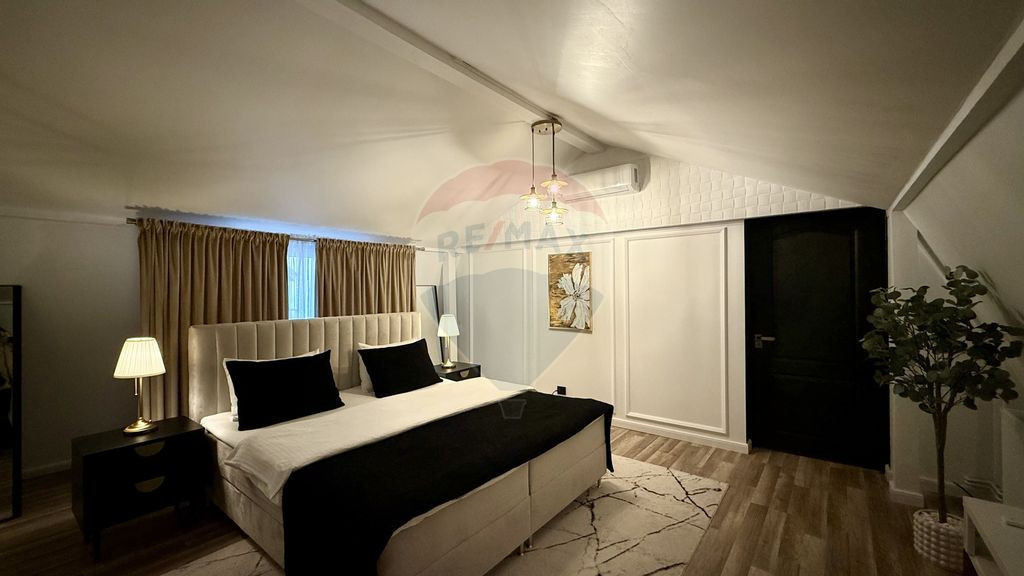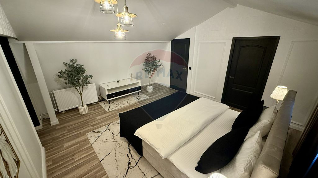 Se oferă spre închiriere parte de casă cu etaj, amenajată la standarde de lux, cu un design modern și finisaje premium. La parter, proprietatea dispune de un living spațios cu bucătărie open space, complet mobilată și utilată, cu mobilier de calitate superioară și electrocasnice moderne, gândite pentru confort și funcționalitate maximă. Spațiul este luminos, elegant și atent organizat, ideal pentru un stil de viață rafinat. La etaj se află un dormitor generos, dotat cu dressing și baie proprie, amenajate cu gust, materiale premium și atenție la cele mai mici detalii. Interiorul este absolut superb, realizat la cel mai înalt nivel de amenajare, oferind o atmosferă exclusivistă și primitoare. În fața porții sunt disponibile două locuri de parcare, un avantaj important pentru confortul zilnic. Proprietatea este ideală pentru persoane care apreciază luxul, intimitatea și calitatea.