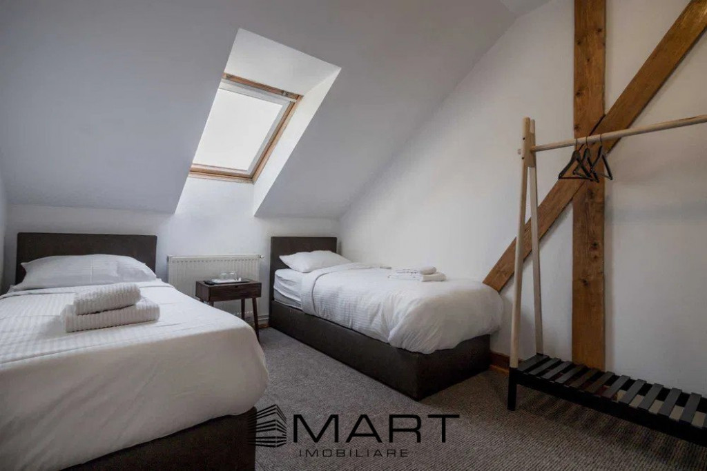 Smart Imobiliare va ofera spre vanzare pensiune moderna si complet dotata cu o suparafata utila de aproximativ 1347 mp. Este compusa din curte pavata cu o suprafata de aproximativ 1100 mp,garaj subteran, sala de evenimente, 30 de camere cu baie. proprietatea este impartita in doua corpuri cu intrari separate si curte interioara. Proprietatea e pretabila ca pensiune, spatiu comercial, birouri, clinica. Pentru mai multe detalii sunati agentul si specificati ca ati vazut oferta cu ID- P15143. Id intern: P15143