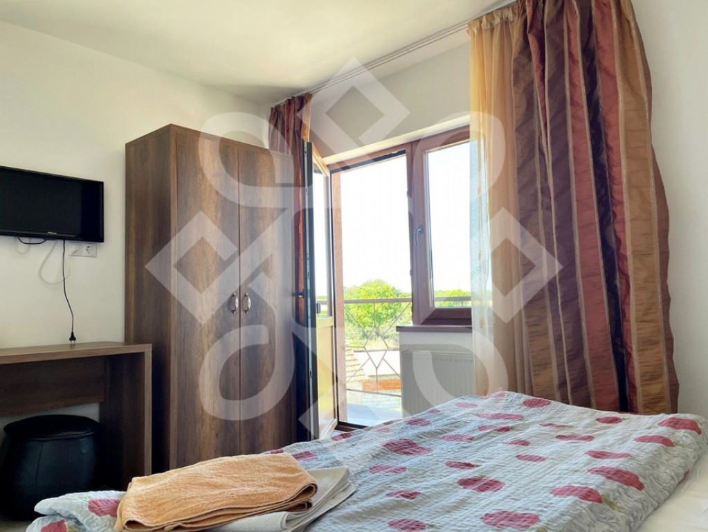 Agentia imobiliara D`Art Imob va ofera o Pensiune cu 7 camere de vanzare in Baile 1 Mai Imobilul este dispus pe 3 nivele: D+P+E, masoara o suprafata utila de 318 mp si este amplasata pe un teren cu suprafata de 870 mp. A fost construit in anul 1990 din caramida cu fundatie de beton si acoperis din tigla. Pensiunea a fost renovata in anul 2016, acoperisul si toate instalatiile electrice si sanitare au fost schimbate. Mai mult, a fost izolata pe exterior cu polistiren. Este dotata cu geamuri termopan si tamplarie PVC, usi de interior din MDF, gresie, faianta, parchet laminat si mocheta in unele camere. La parter regasim 3 camere cu baie proprie din care una are si iesire directa catre curte. Tot la parter este si un spatiu pentru depozitare. Etajul este compartimentat in 4 camere din care 2 au balcon comun si 1 are balcon propriu. Toate camerele au baie proprie cu cabina de dus, sunt mobilate si utilate, dispun de TV si acces la internet. La demisol se afla camera tehnica si un spatiu ce poate fi amenajat ca bucatarie. Suplimentar, podul cladirii poate fi folosit ca spatiu de depozitare. Proprietatea este imprejmuita cu gard de beton, iar curtea este amenajata cu pietris, gazon si arbusti ornamentali. Tot in curte regasim si o filigorie amenajata cu barbeque, mese si scaune. Dispune de acces auto in curte si este racordata la retelele de electricitate, apa si canalizare. Incalzirea se realizeaza cu ajutorul centralei proprii pe lemne. Ca amplasament, se afla la aproximativ 500m de centrul statiunii Baile 1 Mai. Pretul pentru aceasta Pensiune cu 7 camere de vanzare in Baile 1 Mai este de 265000 euro Pentru detalii suplimentare, informatii si vizite, ne puteti contacta la: Nr. Tel.: 0767145857 – Ramona Tica e-mail: [email protected] Sau la sectiunea contact din site-ul nostru: www.dartimob.ro De asemenea, ofertele noastre le puteti viziona si pe Facebook, accesand pagina D’Art Imob. ~~~~~~~~~~~~~~~~~~~~~~~~~~~~~~~~~~~~~~~~~~~~~~~~~~~~~~~~~~~~~~~~~~~~~~~~~~~~~~~~~~~ D`Art Imob real estate agency offers you a Pension with 7 rooms for sale in Baile 1 Mai The building is arranged on 3 levels: B + GF + E, measures a usable area of 318 sqm and is located on a plot with an area of 870 sqm. It was built in 1990 from brick with concrete foundation and tile roof. The pension was renovated in 2016, the roof and all electrical and sanitary installations were changed. Moreover, it was insulated on the outside with polystyrene. It is equipped with double glazed windows and PVC joinery, MDF interior doors, ceramic wall and floor tiles, laminate flooring and carpet in some rooms. On the ground floor we find 3 rooms with private bathroom, one of which has a direct exit to the yard. There is also a storage space on the ground floor. The floor is divided into 4 rooms, 2 of which have a shared balcony and 1 has its own balcony. All rooms have private bathroom with shower, are furnished and equipped, have TV and internet access. In the basement there is a technical room and a space that can be arranged as a kitchen. In addition, the attic of the building can be used as storage space. The property is fenced with concrete fence, and the yard is decorated with gravel, lawn and ornamental shrubs. Also in the yard we find a filigree arranged with barbeque, tables and chairs. It has car access in the yard and is connected to electricity, water and sewerage networks. The heating is done with the help of its own wood-fired boiler. As a location, it is located about 500m from the center of Baile 1 Mai resort. The price for this Pension with 7 rooms for sale in Baile 1 Mai is 265000 euros For additional details, information and visits, you can contact us at: Nr. Tel .: 0767145857 – Ramona Tica e-mail: [email protected] Or at the contact section of our site: www.dartimob.ro You can also view our offers on Facebook by accessing the D’Art Imob page. Id intern: P85