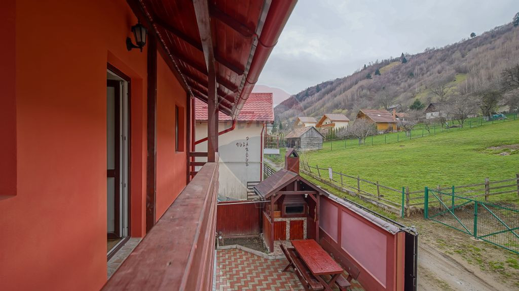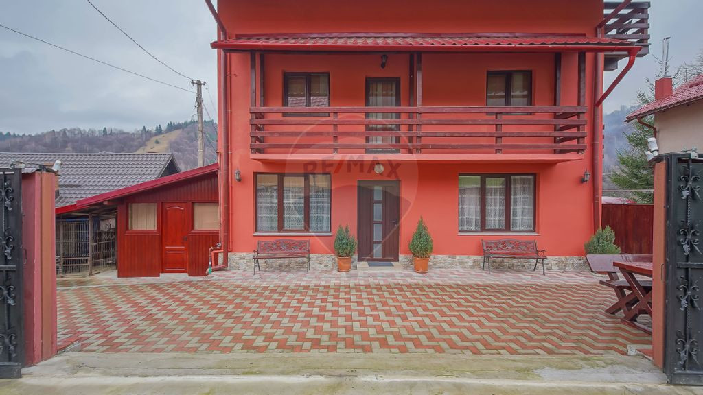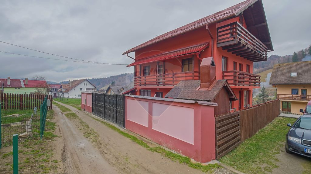 Am oportunitatea sa va prezint o proprietate care se afla in sat Cheia, comuna Moieciu si cu comision 0% din partea ta. Această pensiune te întâmpină cu brațele deschise pe un teren de 196 mp si cu o suprafață utilă de 164 mp amplasati pe parter+etaj+mansarda. Avand o compartimentare decomandata, este compusa dintr-un living cu bucatarie la parter, 6 camere de cazare, 5 bai, iar la mansarda mai este inca o bucatarie. Pe langa asta imobilul are o camera tehnica cu spatiu de depozitare la demisol. Alte avantaje ale proprietatii ar fi ca in curte se pot parca 2 masini usor, iar fiecare camera are balcon propriu, pentru a putea admira oricand privelistea. Situat în inima munților Bucegi din România, aceasta zona turistica transmite o atmosferă de poveste, cu peisaje montane de o frumusețe irezistibilă și aerul proaspăt al naturii ce te îmbrățișează la fiecare pas. Pe lângă peisajele spectaculoase, oferă și o varietate de activități recreative și de aventură, de la drumeții montane și excursii cu bicicleta, până la sporturi de iarnă în sezonul rece. Pentru cei pasionați de gastronomie, zona este renumita pentru produsele locale de calitate, iar tavernele tradiționale te invită să descoperi deliciile gastronomiei românești autentice. Imobilul are tras gazul, curentul electric si fosa septica, iar pe langa asta mai are si o centrala pe lemne la demisol. Indiferent dacă dorești să îți extinzi portofoliul imobiliar sau să îți dezvolți propriul business de cazare, această proprietate îți oferă potențialul și versatilitatea de care ai nevoie pentru a-ți atinge obiectivele financiare și personale. Ai nevoie de informatii suplimentare sau doresti programarea unei vizionari, pe ambele le poti obtine daca ma contactezi!