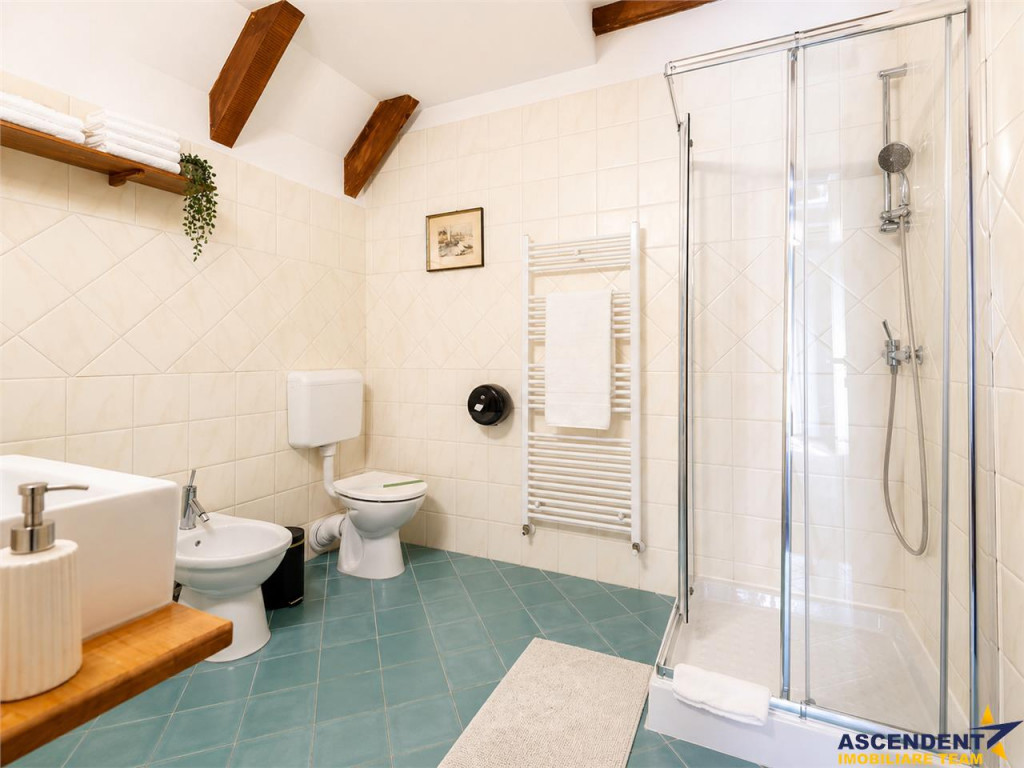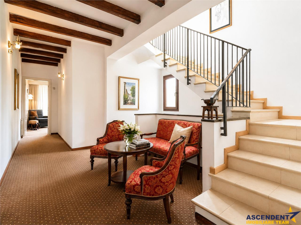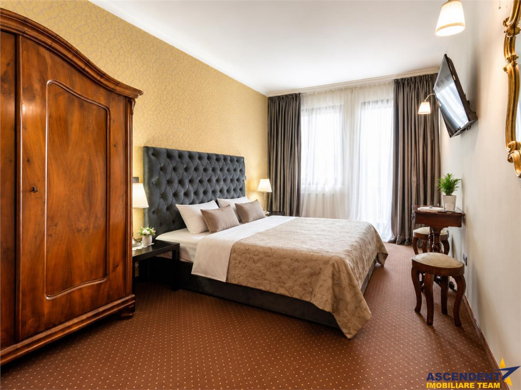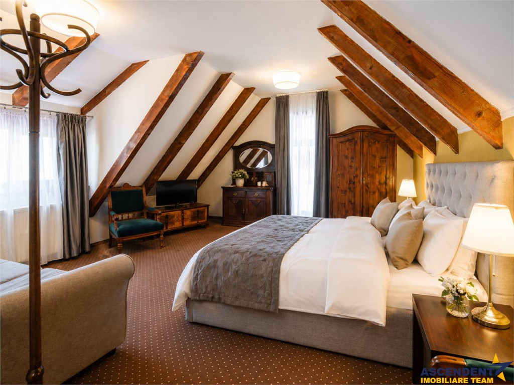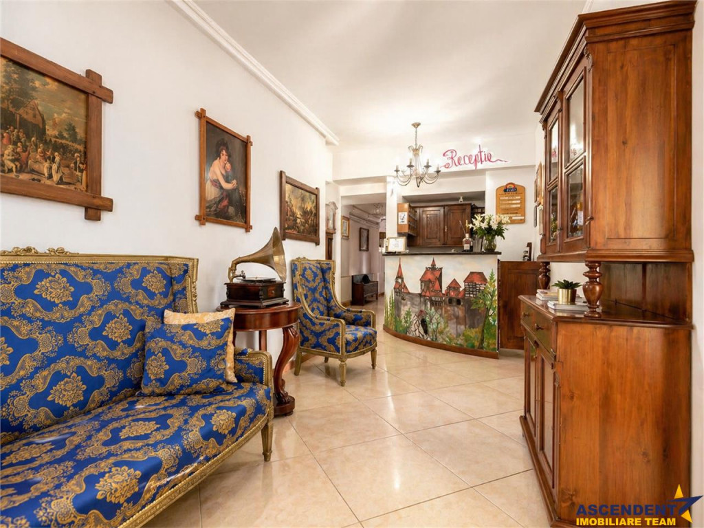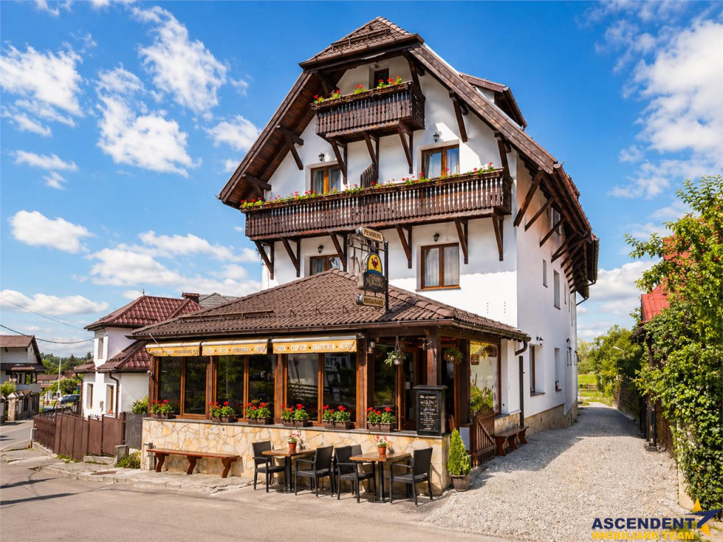 Comision cumparator 0%. ASCENDENT IMOBILIARE va prezinta spre vanzare o REPREZENTARE EXCLUSIVA materializata printr-o proprietate fantastica, respectiv o pensiune-restaurant situata in Bran, cu o pozitionare privilegiata, la 300 m de castelul Bran si la 20 de minute de Brasov, reprezentand investitia ideala intr-un imobil tip pensiune, care prin design si arhitectura, se integreaza perfect in povestile acestui loc. Pensiunea este realizata cu mult bun gust, imbina armonios elementele clasice cu cele moderne si creaza o armonie perfecta de cromatica si stil, cu peisajul montan si cu specificul Branului. Imobilul este dispus pe S P E M Pod, in suprafata utila de 600 mp si cu o configuratie pe 18 de camere, din care 17 individuale, cu baie proprie, restaurant, grup sanitar, bucatarie profesionala, subsol, camera tehnica, o terasa superba, office, receptie, spatii conexe si dependinte. Proprietatea este amplasata pe un teren plan, in suprafata de 883 mp, pe care se pot amenaja cu usurinta elemente de peisagistica, loc de joaca, foisor, zona de barbeque si multe alte facilitati. Completeaza prin faptul ca detine front la doua strazi, se afla in zona de tranzit Bran - Rucar - Pitesti, dispune de o terasa generoasa si are in proximitate toate locatiile de interes, precum magazine, parc, muzeu, farmacie, statie de autobuz, etc. Din punct de vedere tehnic, cladirea beneficiaza de apa la retea, curent electric trifazic, canalizare, gaz, asfalt, internet prin fibra optica si iluminat public, parcare auto atat in curte, cat si in fata, iar constructia este extrem de solida, realizata cu materiale de calitate, pereti din caramida, stalpi si plansee din beton armat, grinzi solide, acoperis cu tigla, fatada exterioara adaptata stilului autohton, pentru a da si mai mult farmec proprietatii. Proprietatea este clasificata cu 3 stele si se preda la cheie, oferind viitorului proprietar un imobil deosebit, cu un potential urias si un business functional din prima zi. Daca doriti sa deveniti parte din elita investitorilor in turismul romanesc, aveti sansa prin achizitia acestei perle montane, sa oferiti turistilor din intreaga lume, o experienta memorabila si autentica. Consultant dedicat acestei oferte, domnul Adrian Petrescu Telefon/Whatsapp: 0732 847 051