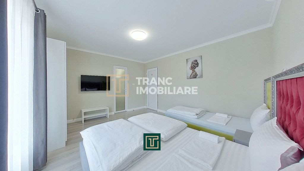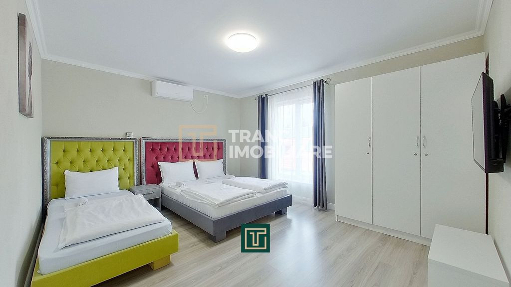 Vă prezentăm o oportunitate rară de investiție într-un business funcțional, bine organizat și pregătit pentru continuarea activității imediat. Această proprietate nu reprezintă doar o pensiune oferită spre vânzare, ci o afacere la cheie, cu structură clară, facilități complete și multiple direcții de dezvoltare în domeniul ospitalității. Proprietatea este alcătuită din două corpuri de clădire. Corpul principal, amplasat în partea din față, dispune de 13 camere, iar corpul secundar, situat în partea din spate, completează proprietatea cu încă 4 camere. În total, pensiunea oferă 17 camere și 18 băi, fiecare cameră având baie proprie, un avantaj important pentru confortul oaspeților și pentru buna desfășurare a activității turistice. Imobilul a fost construit în anul 2006, este finalizat, disponibil imediat și edificat pe structură din cărămidă. Suprafața utilă este de aproximativ 600 mp, suprafața construită ajunge la 700 mp, iar terenul aferent are o suprafață totală de 1.375 mp. Proprietatea beneficiază și de o curte generoasă, iar regimul de înălțime este demisol + parter + mansardă. Pensiunea dispune de toate facilitățile necesare pentru desfășurarea unei activități turistice complete și atractive. Restaurantul propriu, bucătăria complet echipată, terasa destinată oaspeților, piscina exterioară, zona de relaxare amenajată și parcarea generoasă cu 12 locuri în curtea interioară contribuie la conturarea unei proprietăți pregătite să răspundă atât cerințelor pieței, cât și așteptărilor unui investitor atent la potențialul real al unei astfel de achiziții. Unul dintre marile avantaje ale acestei proprietăți este faptul că businessul este deja funcțional, ceea ce permite preluarea și continuarea activității fără întârzieri. Compartimentarea este eficientă, spațiile sunt bine gândite pentru cazare, servirea mesei și relaxare, iar proprietatea oferă un potențial real de extindere și diversificare a serviciilor. Amplasarea într-o zonă cu trafic pietonal moderat oferă un echilibru foarte bun între accesibilitate, vizibilitate și liniștea necesară unei unități de cazare. Această proprietate este ideală pentru investitorii care își doresc o afacere stabilă, cu o bază solidă și perspective reale de creștere. Fie că intenționați să continuați activitatea existentă, fie că aveți în vedere dezvoltarea unui nou concept în zona turismului și ospitalității, această pensiune oferă cadrul potrivit pentru o investiție sigură și valoroasă. Pentru mai multe detalii și pentru programarea unei vizionări, echipa Tranc Imobiliare vă stă la dispoziție.
