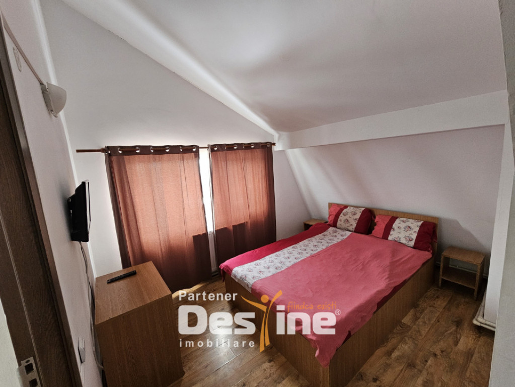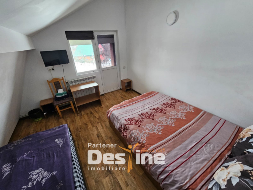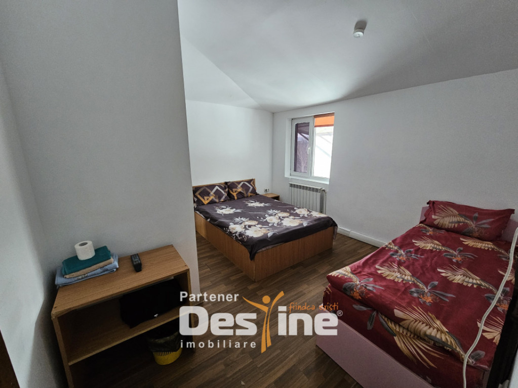 Destine Imobiliare va ofera spre inchiriere: PENSIUNE 13 camere, complet funcțională 300mp - Bucium PREȚ: 1500/luna Informații utile despre proprietate: - imobil construit in anul 2005 - dispus pe 3 niveluri: Parter + Etaj 1 + Mansardă - Suprafață totală desfășurată aproximativ 300 mp + mansardă Compartimentare eficientă, pe mai multe niveluri: ➤ PARTER: - sală deschisă cu mese și banchete - zonă de bar amenajată - 6 camere, 4 băi, hol, bucătărie ➤ ETAJ 1: - 4 camere spațioase, cu acces la balcon deschis - 2 băi - 1 cameră cu baie proprie - 1 baie la comun ➤ MANSARDĂ: - 3 camere cu acces la balcon - 2 băi - 1 cameră cu baie proprie - 1 baie la comun Proprietatea beneficiază de: ✔️ curte proprie de aproximativ 100 mp ✔️ parcare în incintă ✔️ terasă exterioară ✔️ zonă amenajată pentru grătar ✔️ scară exterioară pentru acces la etajul 1 ✔️ două centrale termice ✔️ tâmplărie PVC cu geamuri termopan Proprietatea este potrivită pentru: ✔️ activitate de pensiune / regim hotelier ✔️ cazare muncitori sau personal firmă ✔️ organizare evenimente restrânse ✔️ centru de formare sau retreat Imobilul are structură decomandată și se închiriază complet mobilat și utilat, fiind pregătit pentru preluare și funcționare imediată. Închirierea se realizează pe termen lung, cu contract pe o perioadă minimă de 12 luni. Se solicită o garanție echivalentă cu două luni de chirie. Condițiile sunt cele standard: plata unei luni în avans și achitarea comisionului aferent agenției. Detalii suplimentare și vizite la locatie: Radu Chirica - 0750 294 050 Cod oferta: P - 4802 Id intern: P4802