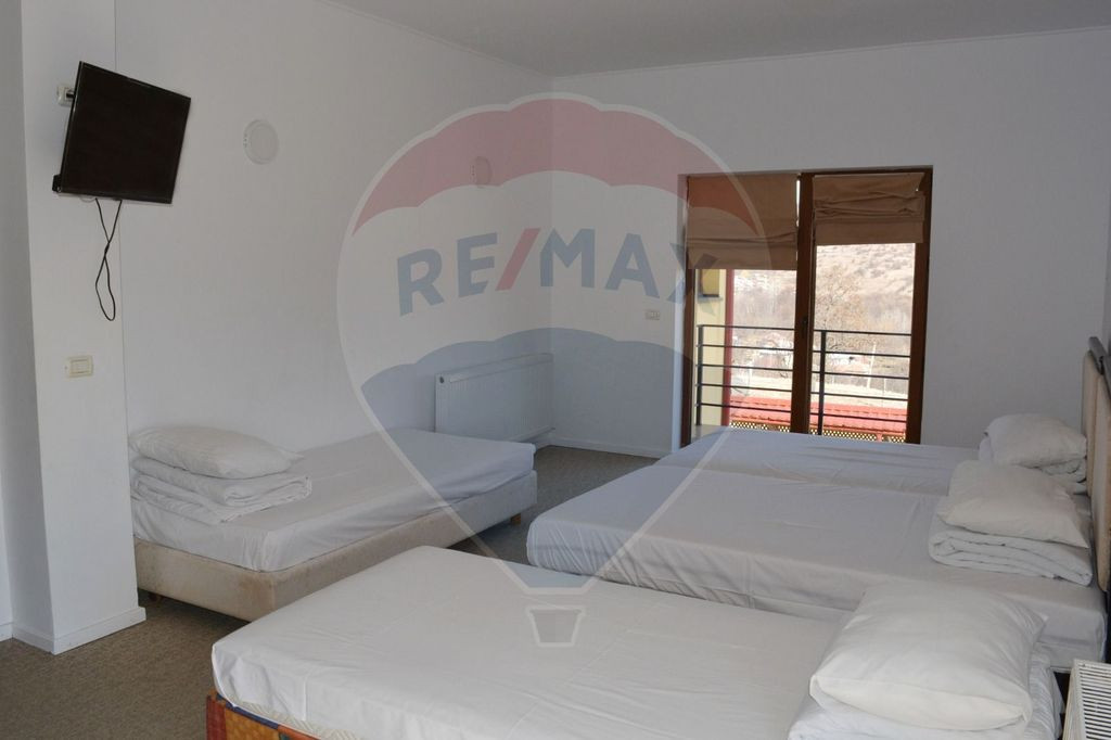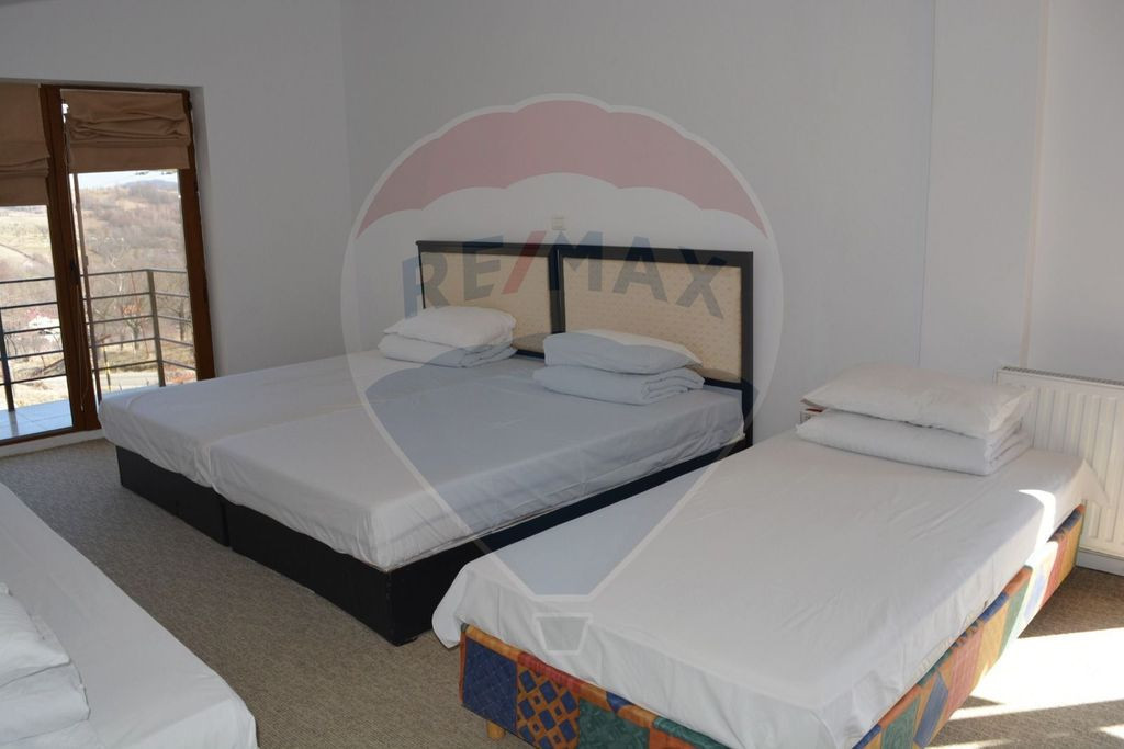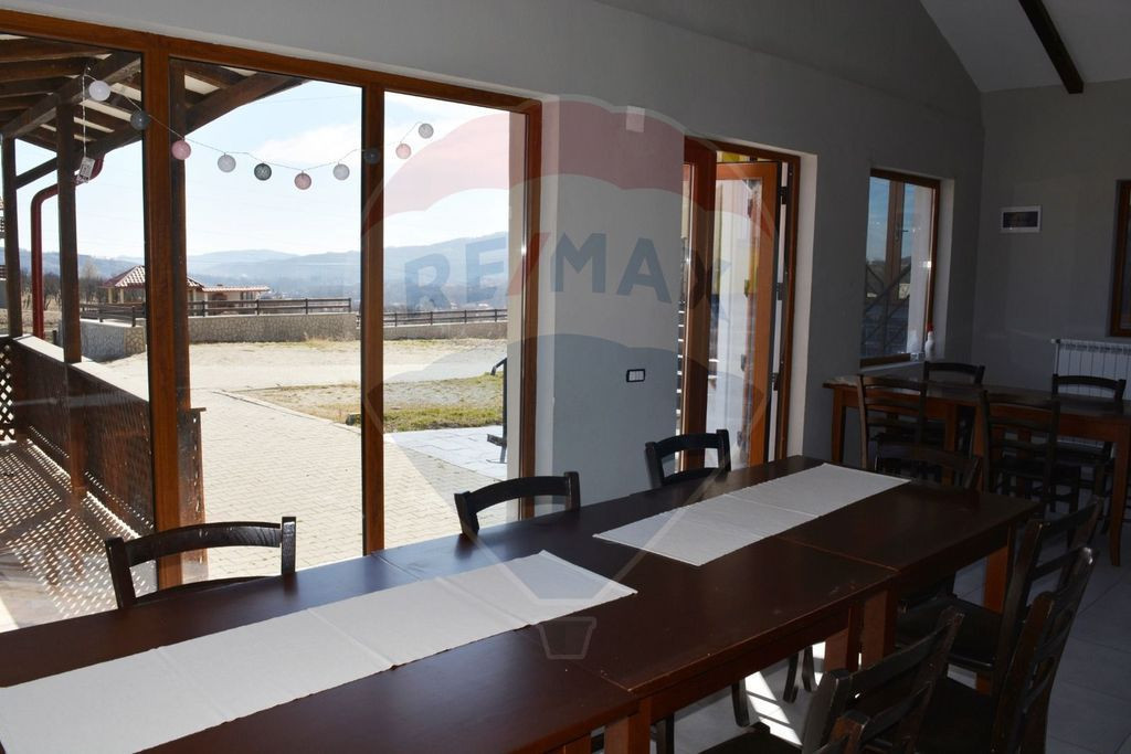 Se vinde Pensiunea Taco din Horezu – o proprietate versatilă, ideală pentru investitorii care doresc să dezvolte un business într-o zonă cu trafic turistic (UNESCO & Poarta Transalpinei). Principalele avantaje ale proprietății: Locație: Poziționare excelentă, cu acces facil și vizibilitate directă de la artera principală. Panoramă: Vedere spectaculoasă către munți și împrejurimi, un avantaj competitiv major în turism. Flexibilitate: Ofera libertate totală noului proprietar pentru reamenajare, rebranding sau schimbarea destinației. Structură: Compartimentare eficientă, spații comune generoase (terasă, zonă de recepție). Viziune: Proprietatea necesită o etapă de împrospătare/modernizare, fiind însă fundația perfectă pentru o afacere profitabilă într-un hub turistic aflat în continuă creștere.