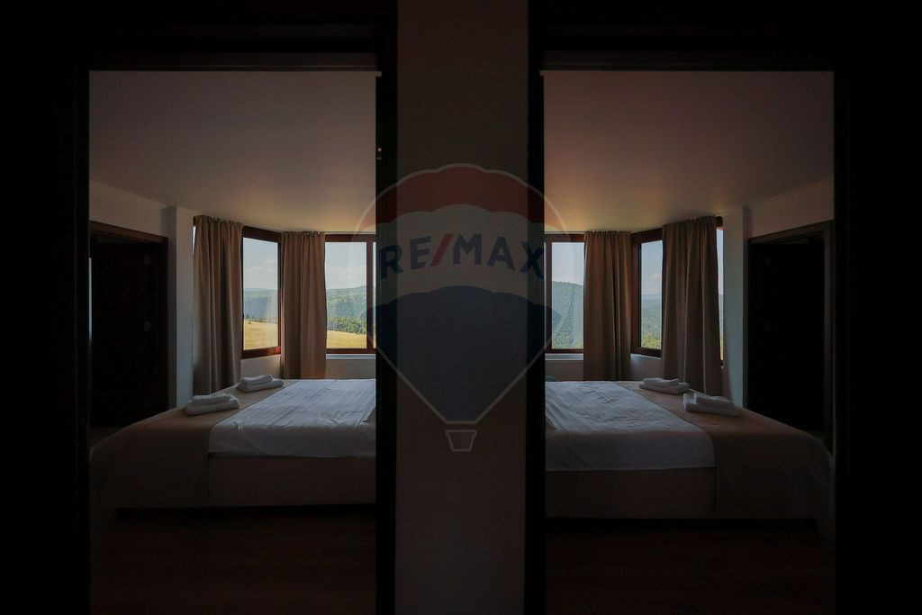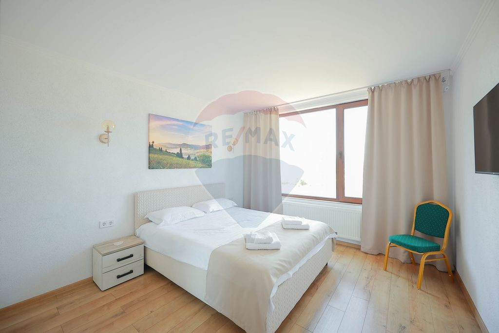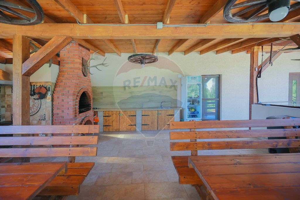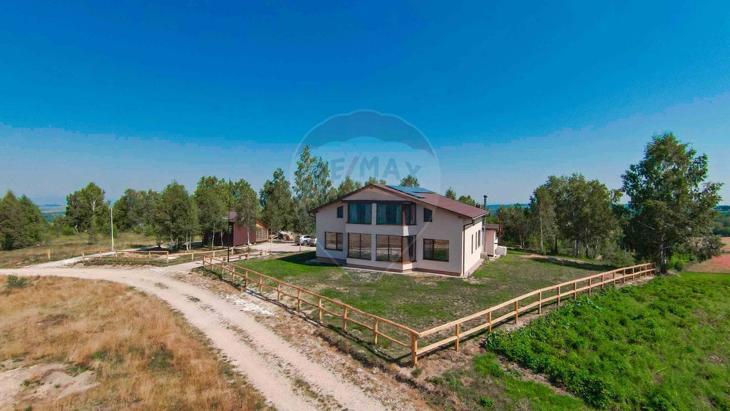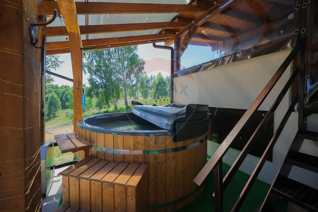 Vă propunem spre vânzare o pensiune situată la 1100 m altitudine, în localitatea Rișca, jud. Cluj, această fiind o oportunitate pentru investitorii sau antreprenorii din turism care caută un colț de rai, complet funcțional și poziționat strategic: 10 km de Beliș, 15 km de Tarnița, 27 km de Mărișel. Este construită pe un teren de 4000 mp, având 462 mp desfășurați D+P+E, plus o anexă -construcție ușoară- de 46 mp desfășurați. Compartimentare: Demisol: -spatiu de recreere/socializare cu ventilație, destinat fumătorilor -toaletă de serviciu -cameră tehnică Parter: -4 dormitoare mobilate, fiecare cu baie proprie cu duș -living spațios -zonă de dinning pentru 16 persoane -bucatarie complet mobilată și utilată. Etaj: -4 dormitoare mobilate, fiecare cu baie proprie cu duș -cameră de recreere cu activități pentru copii și masă de biliard -spațiu destinat depozitării Anexa poate găzdui 3 persoane și este compartimentată astfel: living open space cu bucătărie complet echipată, iar la etaj avem 1 dormitor și un spațiu de depozitare. Pensiunea este completată de o terasa acoperită dotată cu loc de luat masa, zone pentru depozitare, frigider, chiuvetă, loc de grătar construit. Pentru și mai multă relaxare dispune de un ciubăr cu hidromasaj. Pentru siguranță pensiune este dotată la exterior cu supraveghere video și iluminat nocturn cu paratrăsnet. Pentru mai multe detalii sau o vizionare privată, contactează-mă direct — proprietatea e pregătită să-și întâlnească următorul vizionar!