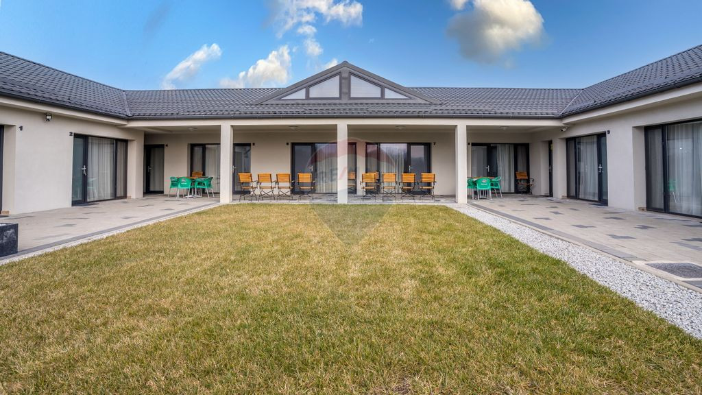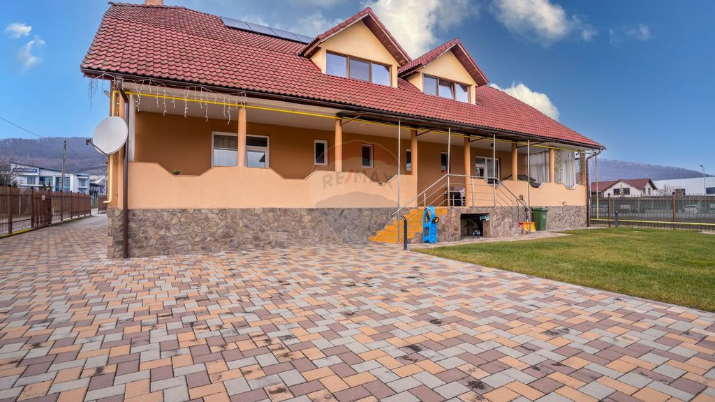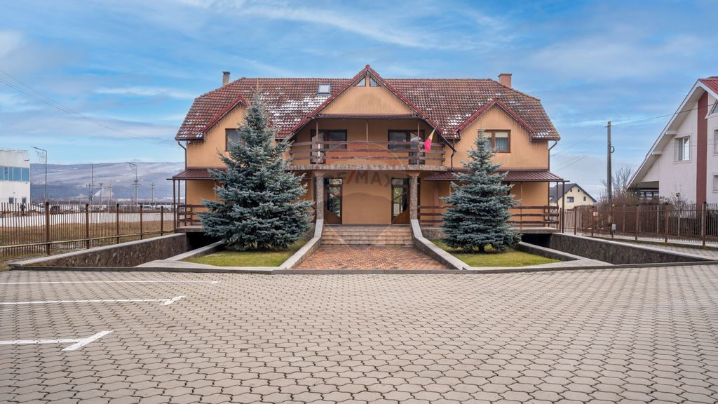 Dacă vă doriți un loc unde să vă simțiți acasă, dar și să transformați o investiție imobiliară într-o afacere de succes, această proprietate situata în Viișoara, Bistrița-Năsăud, este ceea ce căutați! Proprietate este versatilă și poate reprezenta atât un cămin pentru dvs, cât și o afacere la cheie în domeniul hotelier, fiind împarțită în 3 unități distincte: o pensiune cu restaurant, un duplex în curtea comună si un imobil cu spații de cazare. Suprafața utilă totală este de 1.200 mp, iar terenul aferent este de 4.100 mp, oferind astfel suficient spațiu pentru relaxare, activități și alte eventuale extinderi. Pensiunea dispune de 16 camere spațioase și luminoase, cu baie proprie, dotate cu tot ce este necesar pentru a oferi o experiență confortabilă clienților (clădirea 1 are 5 camere, iar clădirea 2 are 11 camere), în suprafață totală de 584 mp. Restaurantul, cu o capacitate de 32 de locuri în interior și 24 de locuri pe terasa exterioară, este perfect atât pentru mesele de zi cu zi, cât și pentru organizarea de evenimente mici sau petreceri. Bucătăria este dotată cu echipamente profesionale din inox, iar serviciile oferite sunt de cea mai înaltă calitate. Duplexul: pentru cei care doresc să locuiască în apropiere de afacerea lor sau să facă reconversia în pensiune, suprafața duplexului este generoasă și anume 428 mp, distribuiți pe 3 niveluri (subsol, parter, mansardă), plus spații suplimentare însumând 188 mp (terase, pod, magazie). La subsol - 2 garaje, 2 spălătorii, 2 pivnițe, 2 holuri, centrală termică, la parter – 2 bucătării, 2 camere, 2 băi, 2 holuri, casa scării, la mansardă – 6 camere, 2 băi. Cu un design modern și finisaje de calitate, duplexul este dotat și cu un sistem de iluminat inteligent, aer condiționat, încălzire centralizată și șemineu pentru serile răcoroase. Curtea este pavată și amenajată, plină de arbuști și pomi fructiferi (cireși, pruni, aluni, nuci, peri, vișini). În plus, exista 20 de locuri de parcare, care oferă confort și siguranță, atât pentru oaspeți cât și pentru vehiculele personale. Pentru cei care țin la sustenabilitate și eficiență energetică, această proprietate beneficiază de două sisteme independente de panouri fotovoltaice, unul de 18 kw și unul de 19 kw, care asigură o producție totală de 37 kw, astfel, costurile de energie fiind reduse semnificativ, iar impactul asupra mediului fiind minim. De asemenea, proprietatea dispune de un sistem de supraveghere video: monitorizare 24/24, asigurând securitate proprietății și oaspeților. Oportunitate de afacere Dacă vă doriți să investiți în domeniul ospitalității, această pensiune este pregătită pentru a funcționa imediat, fiind deja dotată și funcțională. În plus, având în vedere structura sa, proprietatea poate fi reconvertită cu ușurință în totalitate în pensiune sau centru de seniori. Contactați-ne pentru mai multe detalii sau vizionare!