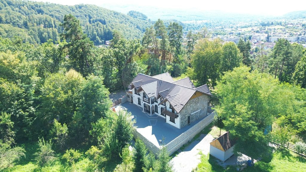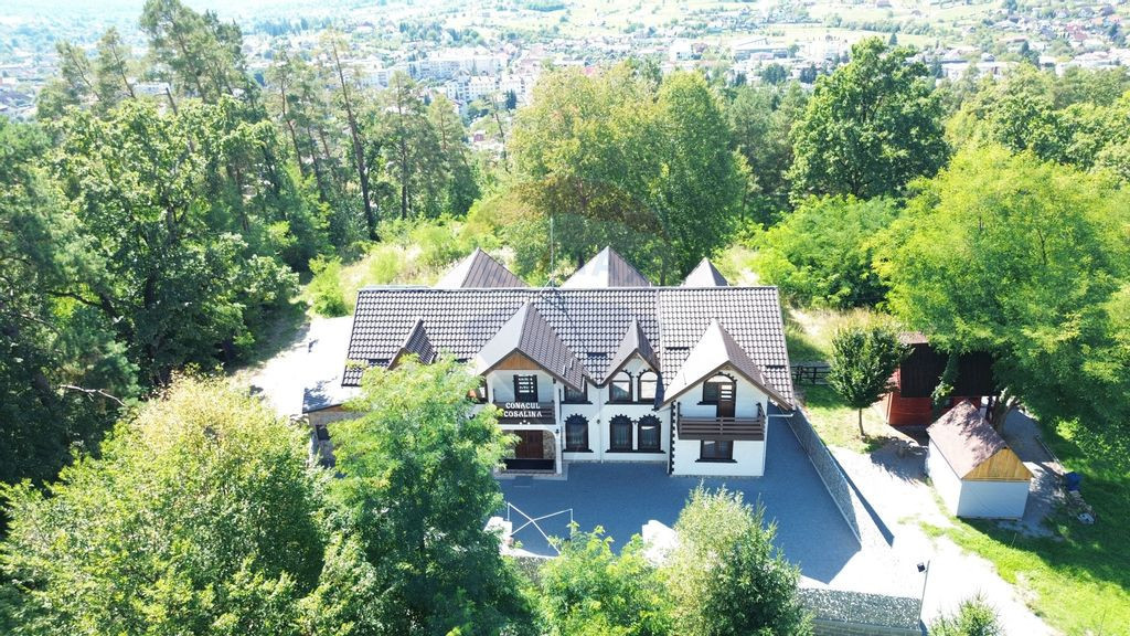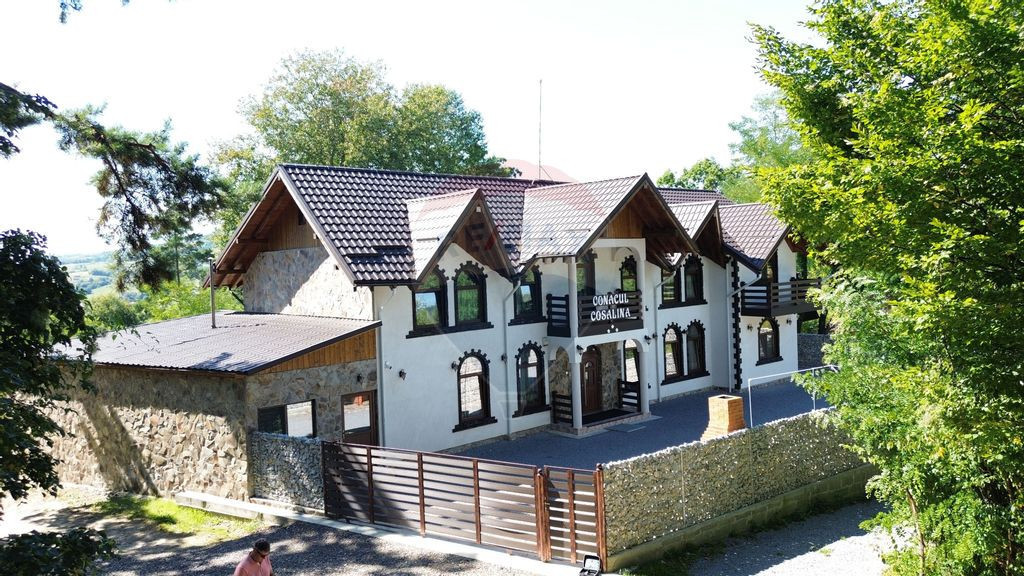 Pensiune de vânzare în Sovata – Conacul Cosalina În mijlocul naturii, la doar 400 m de Lacul Negru și 700 m de Lacul Ursu, vă așteaptă o oportunitate unică: Conacul Cosalina, o pensiune nouă, construită în 2024, într-un cadru feeric de poveste. Cu o arhitectură speciala și detalii care amintesc de rafinamentul unui conac autentic, proprietatea oferă tot confortul necesar pentru a primi oaspeți în cele mai bune condiții: - 11 dormitoare spațioase(7 camere si doua apartamente), fiecare cu baie proprie - 2 bucătării complet utilate - Cameră tehnică și sisteme moderne de încălzire (centrală pe peleți + panouri termale) Fiecare camera are mobilier unic, mobilier care a fost pastrat si reconditionat cu multa migala si atentie la detalii. Suprafața terenului este de 525 mp, iar pensiunea este înconjurată de pădure, oferind liniște, aer curat și o priveliște superbă pentru cei care caută relaxare sau vacanțe active în Sovata. O investiție ideală pentru cei care doresc să îmbine turismul cu rafinamentul și să ofere turiștilor o experiență de neuitat în inima Transilvaniei.