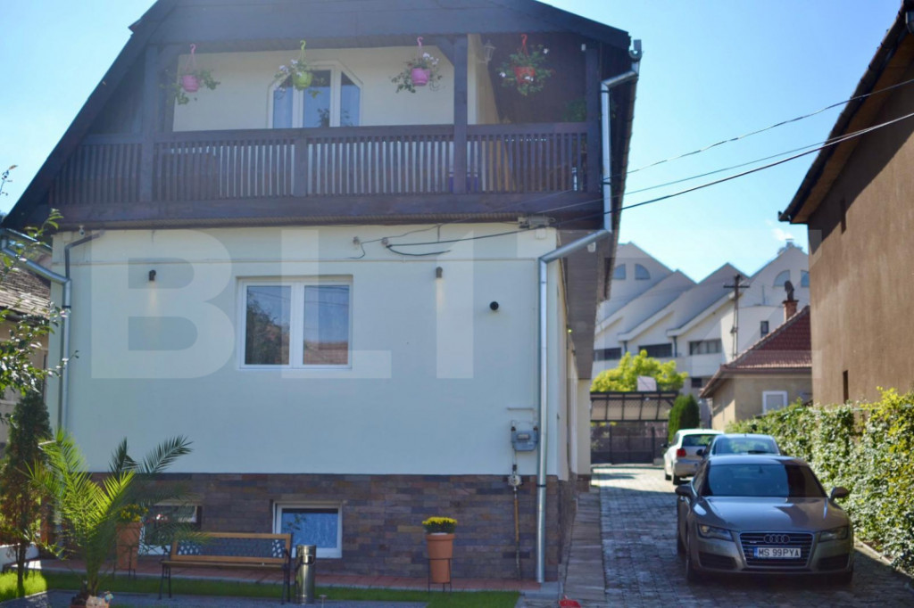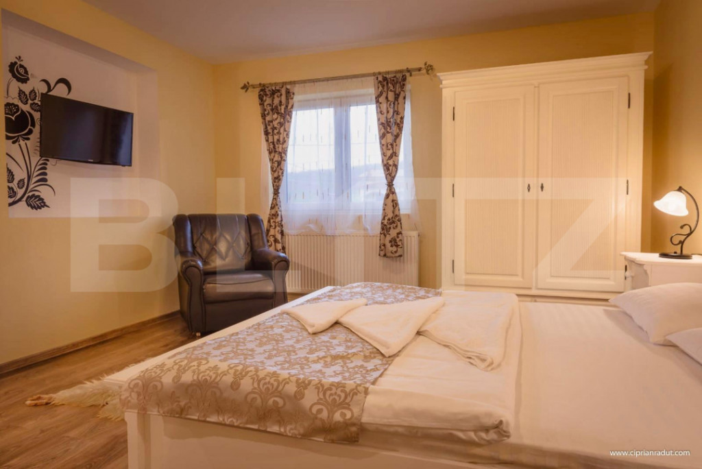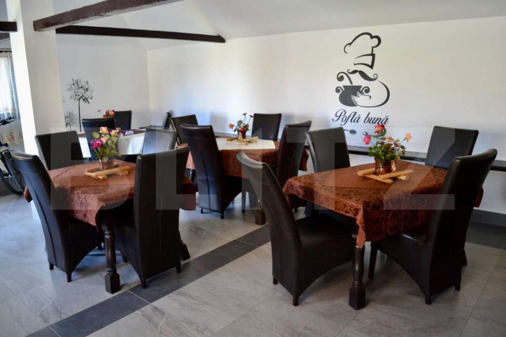 Blitz vă propune spre vânzare o proprietate deosebită, situată într-una dintre cele mai cunoscute stațiuni balneare din Transilvania – Bazna, o destinație apreciată pentru tradiția sa în turismul de sănătate, apele minerale iodurate și nămolul terapeutic recunoscut pentru proprietățile sale curative. Pensiunea dispune de 10 camere și o suprafață utilă de aproximativ 250 mp, fiind concepută pentru activități turistice și pentru a oferi oaspeților un cadru intim, liniștit și confortabil. Proprietatea este amplasată pe un teren generos de 800 mp, care oferă spațiu pentru zone de relaxare, grădină sau facilități recreative. În plus, există posibilitatea achiziționării a încă 800 mp de teren, un avantaj important pentru extinderea capacității de cazare sau dezvoltarea unui concept turistic complex. Un avantaj major al proprietății este poziționarea la doar câțiva metri de Complexul Balnear Expro, una dintre principalele atracții ale stațiunii, unde turiștii vin pentru tratamente și relaxare. Pensiunea dispune de bucătărie complet utilată și sală de mese, oferind oaspeților posibilitatea de a se gospodări singuri și de a se bucura de un sejur confortabil și flexibil. Stațiunea Bazna se bucură de o reputație solidă în turismul balnear, atrăgând anual turiști din țară și din străinătate datorită resurselor naturale rare: izvoare minerale sărate bogate în iod și brom, lacuri saline și nămol sapropelic utilizat în terapii de recuperare și tratament. Atmosfera liniștită, aerul curat și peisajul specific Transilvaniei transformă zona într-o destinație ideală pentru relaxare, tratament și turism slow. Un alt avantaj este faptul că celebrul traseu de drumeție Via Transilvanica trece chiar prin fața pensiunii, atrăgând anual mii de turiști și drumeți din întreaga lume, ceea ce crește semnificativ potențialul turistic al proprietății. Această proprietate reprezintă o oportunitate rară pentru investitori sau antreprenori din domeniul turismului, oferind cadrul ideal pentru dezvoltarea unei pensiuni boutique sau a unui concept turistic orientat spre relaxare și turism balnear. Cod ofertă / ID BLITZ: P167251 Id intern: P167251