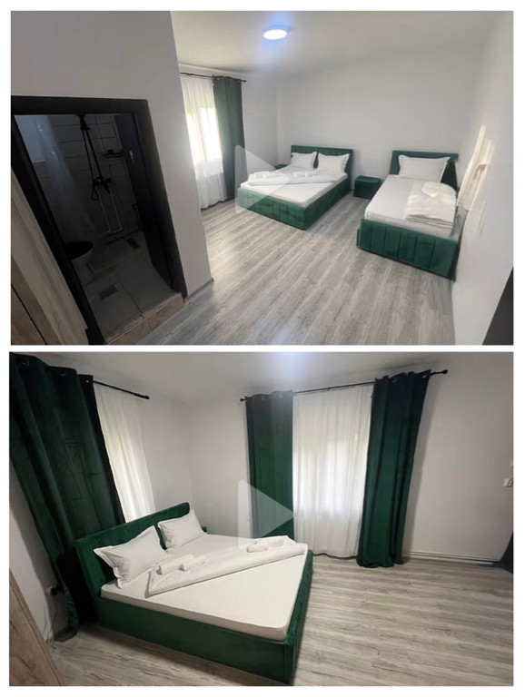 Vând o pensiune și o cabană.în stațiunea Sovata chiar în stațiune pe drumul principal.cu mobila completă . Total 9 camere și 2salonuri . Pensiunea are 6 camere fiecare cameră are proprie baie .si recepție și o bucătărie cu salon.si o cabană cu 3 camere. Și băi si salon. Și teren suprafață 1100 metri pătrați. Recent renovat de 2ani total interior și mobilat