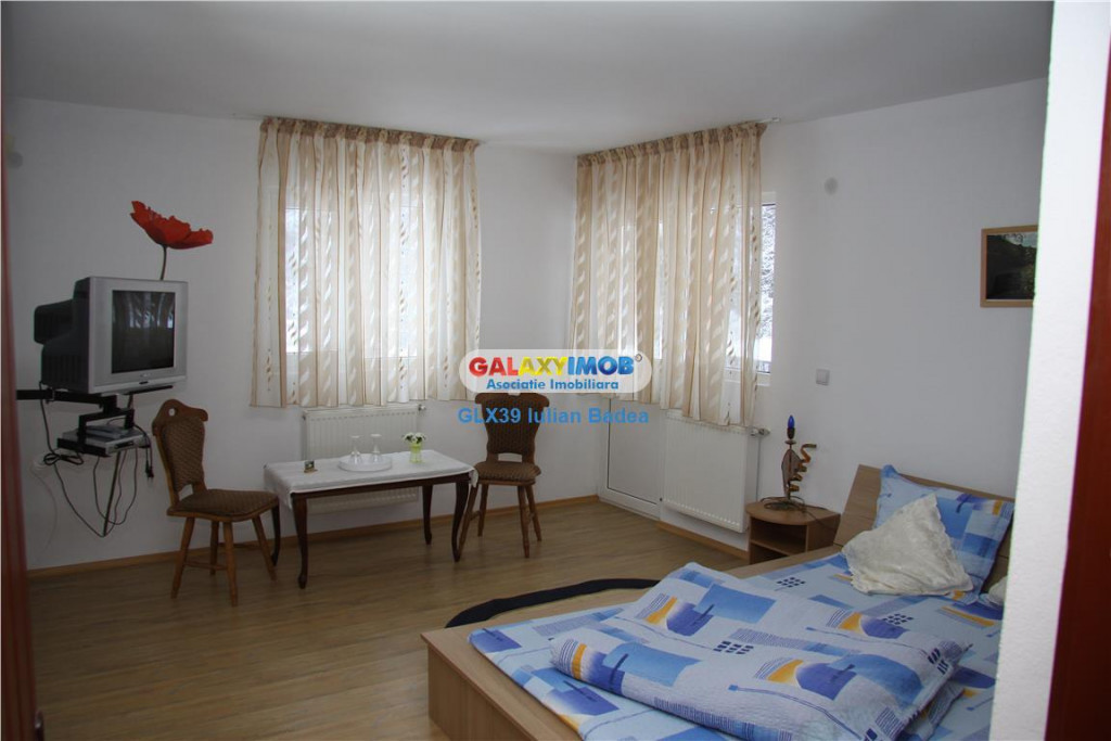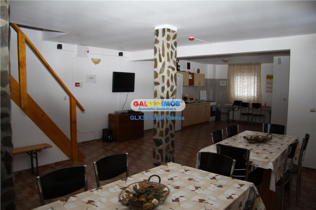 Oferta Exclusiva. De vanzare pensiune (an constructie 2008) in Malaia, (la 12 km de Voineasa) judetul Valcea compusa din doua corpuri de cladire camera tehnica si spatiu depozitare: Cladire 1 (P 1 M pod): - Parter: living, bucatarie, baie, spatiu depozitare, 2 terase - Pe fiecare etaj, 4 camere fiecare cu baie si terasa proprie (8 camere de inchiriat) Cladire 2 (P M pod): - Parter: living, baie, bucatarie, spatiu depozitare, terasa - Mansarda: baie, hol, doua camere fiecare cu terasa Camera tehnica este dotata cu boilere, pompe, hidrofor, centrala cu lemn toate marca Romstal toate in perfecta stare de functionare. Pensiunea are aferent o suprafata de 1700mp teren cu deschidere la raul Lotru. In curte se gasesc doua foisoare, doua gratare, magazie, spatii de depozitare, sistem de iluminat, fantana, spatii verzi si de agreement, livada, solar, gradina de legume, flori, leagan, etc. Pensiunea se vinde complet utilata si mobilata gata de folosinta. Proprietatea poate avea ca si destinatie atat pensiune, spre exemplu camin pentru ingrijire persoane varstnice Informatii eficienta energetica: Clasa energetica: A Consumul de energie primara: Indicele de emisii echivalent CO2: Consum de energie din surse regenerabile: